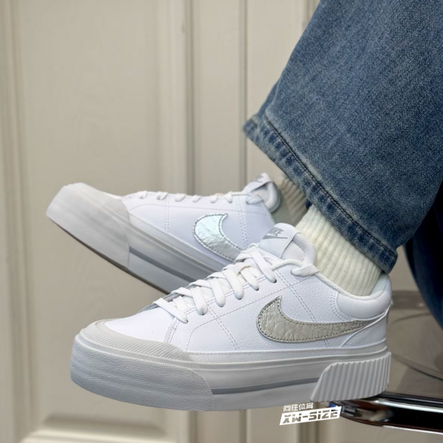 向往体育Nike/耐克Court Legacy女子白银增高休闲板鞋HQ2307-100