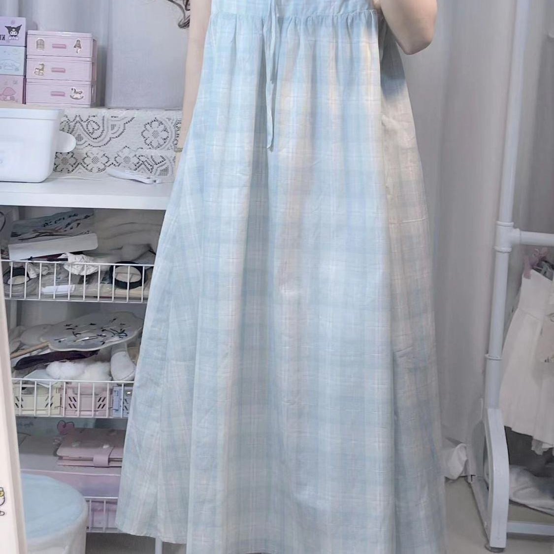 休闲盐系少女格子连衣裙假两件夏季气质吊带裙子女学生甜美a字裙