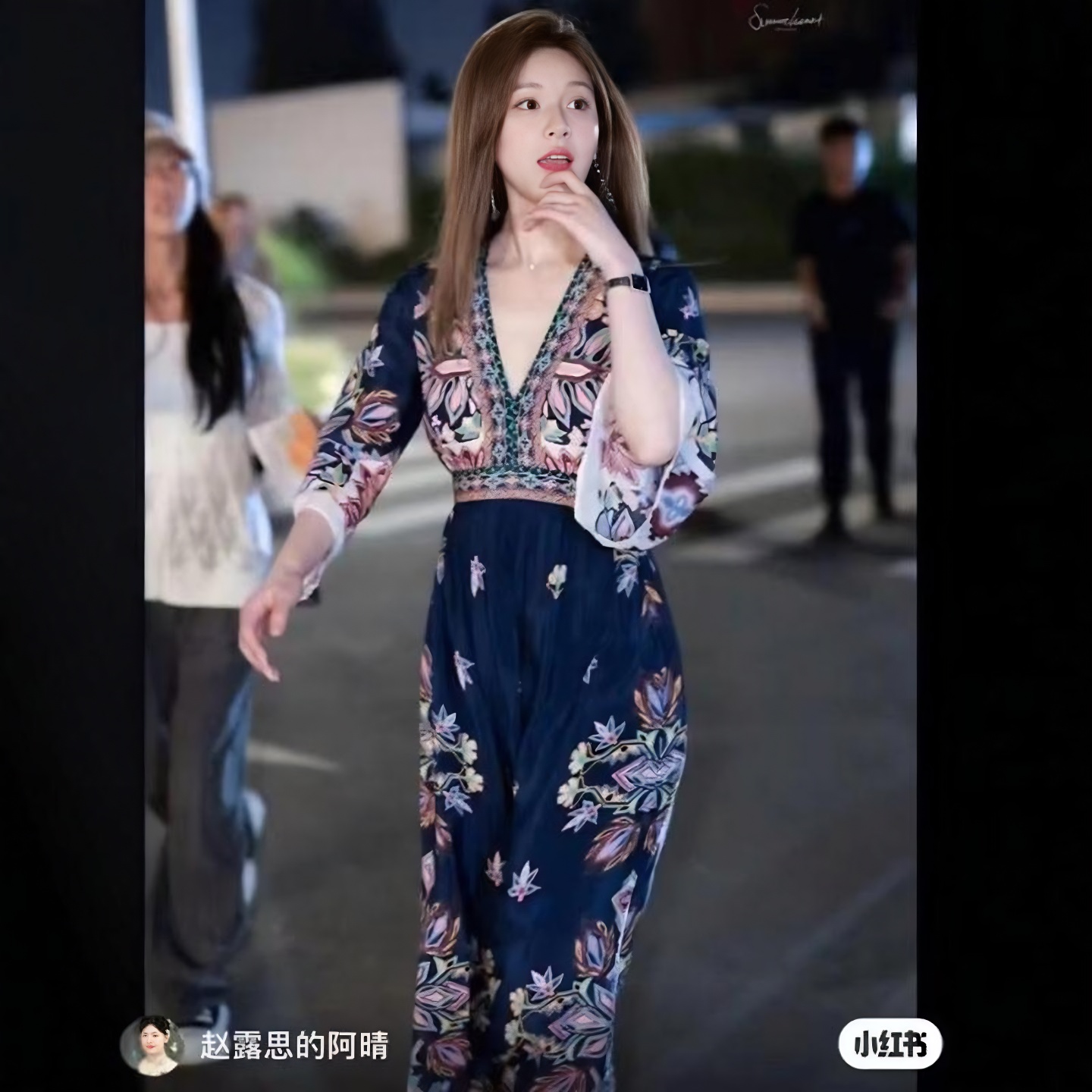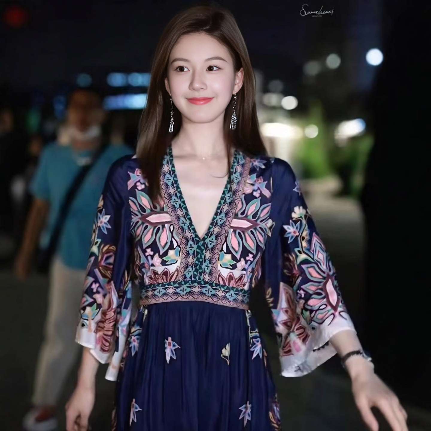 许我耀眼赵露思许妍同款波西米亚民族风高级感裙子汉服印花连衣裙