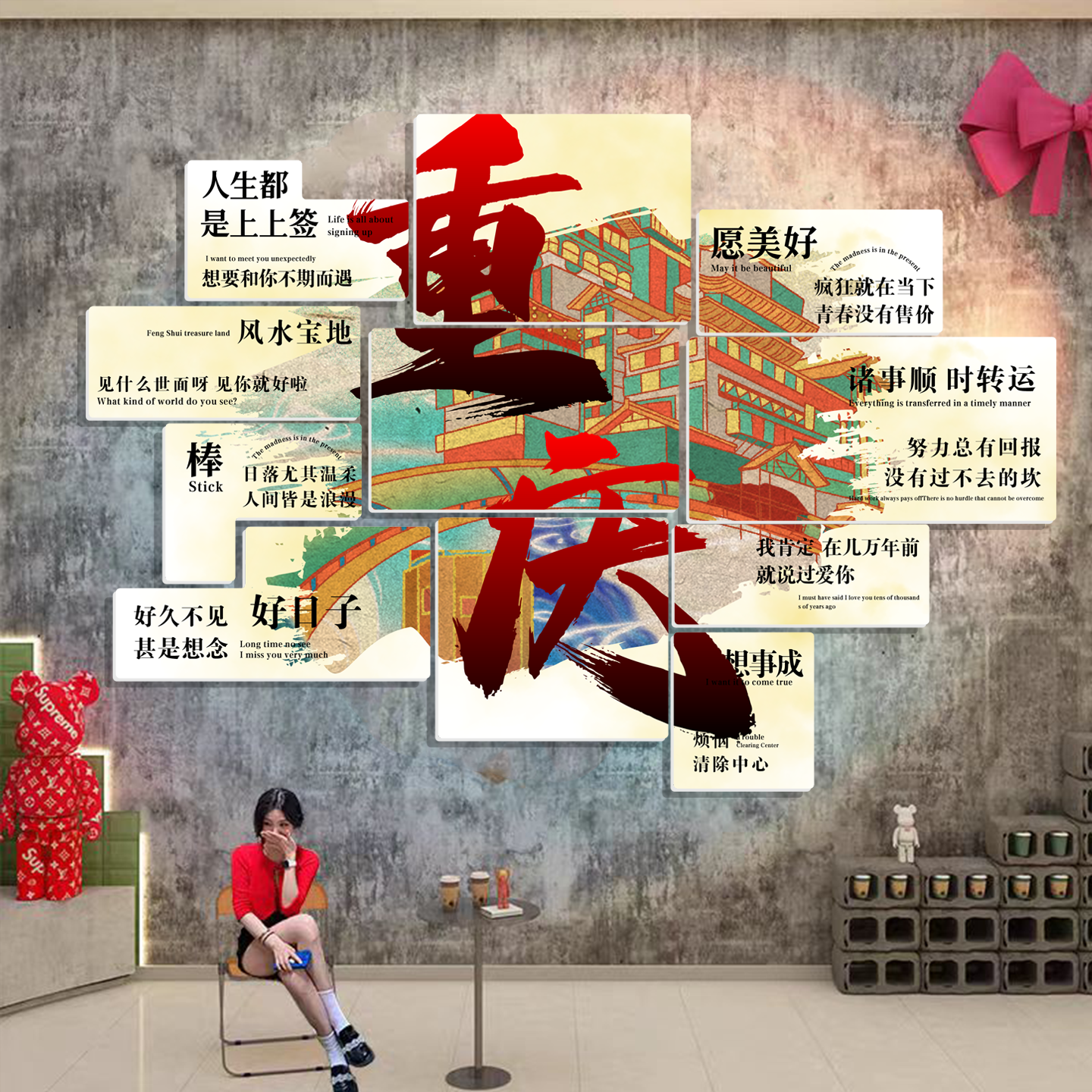 定制网红打卡背景拍照区布置工业风户外酒吧烧烤店墙面装饰壁纸画
