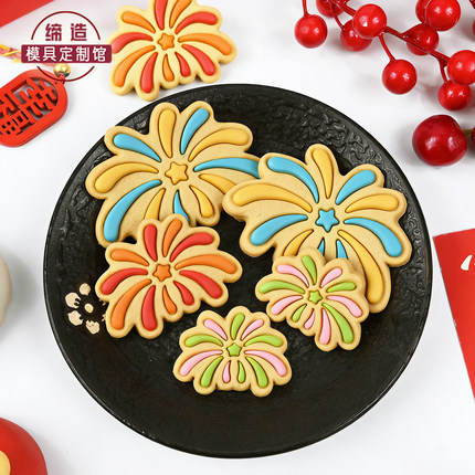 2026新年烟花饼干模具大中小号翻糖曲奇3D立体按压式家用烘焙工具