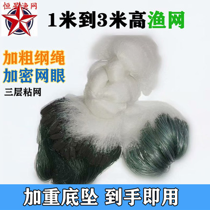 渔网丝网粘网三层鱼网沉网加粗加重捕鱼网白条网鱼网大全沾100米