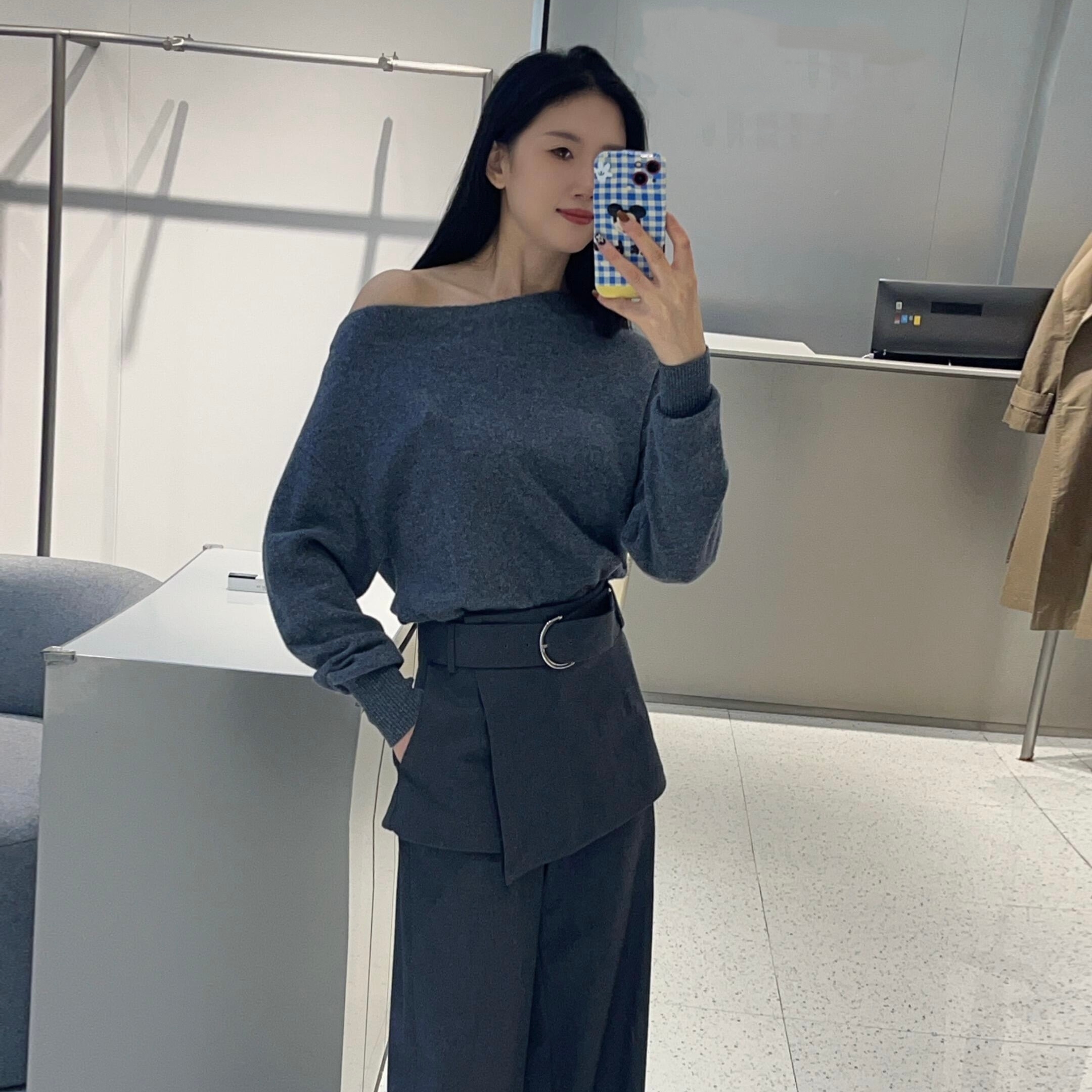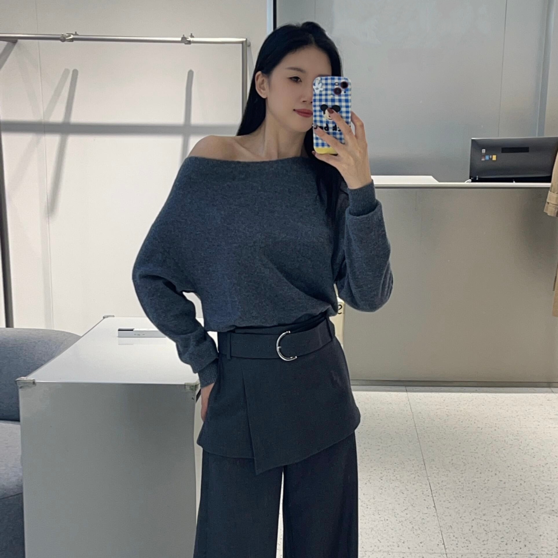 ariosee艾诺丝槿官方旗舰店25秋长袖露肩斜领针织衫毛衣AR804127