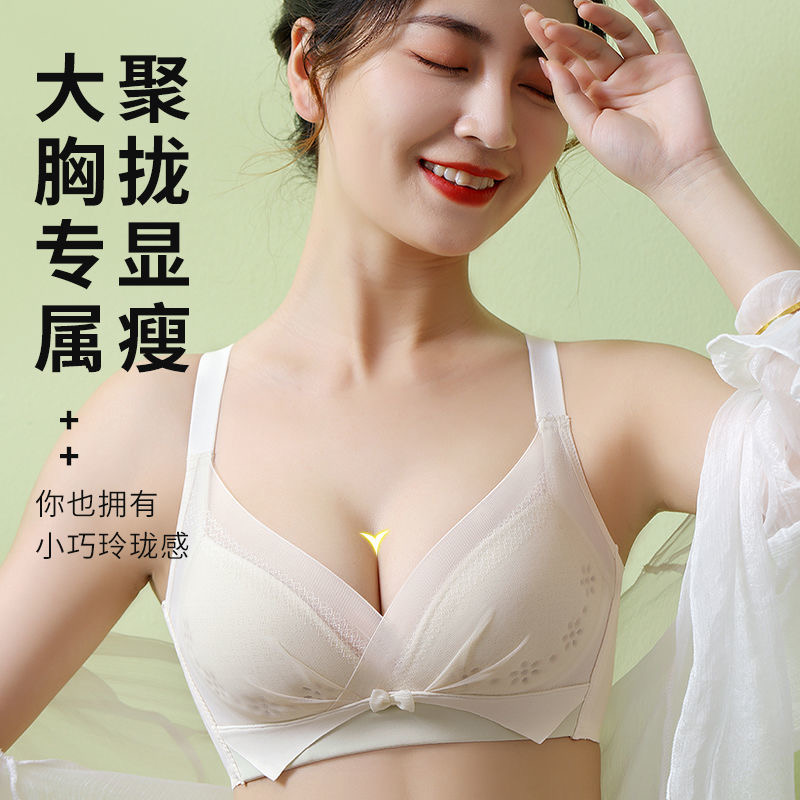 内衣女薄款大胸显小文胸罩透气洞洞杯收副乳上托防下垂罗丽丝女神