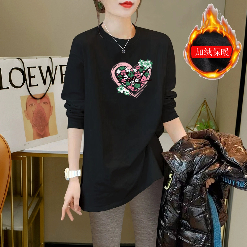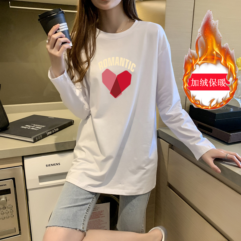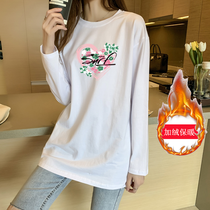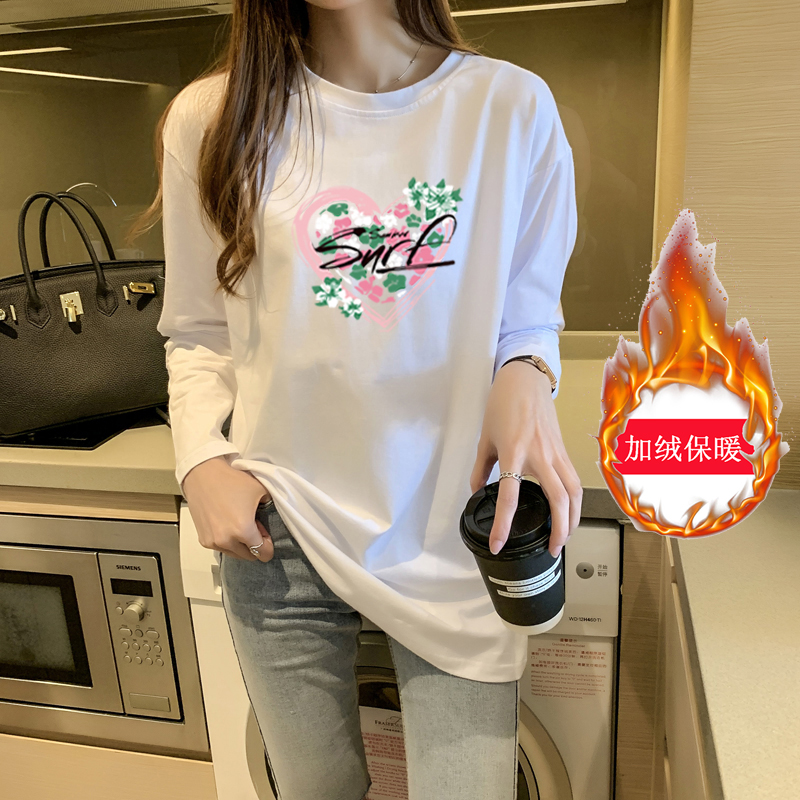 秋冬新款加绒长袖T恤女打底衫大码中长款韩版上衣服内搭女装体恤