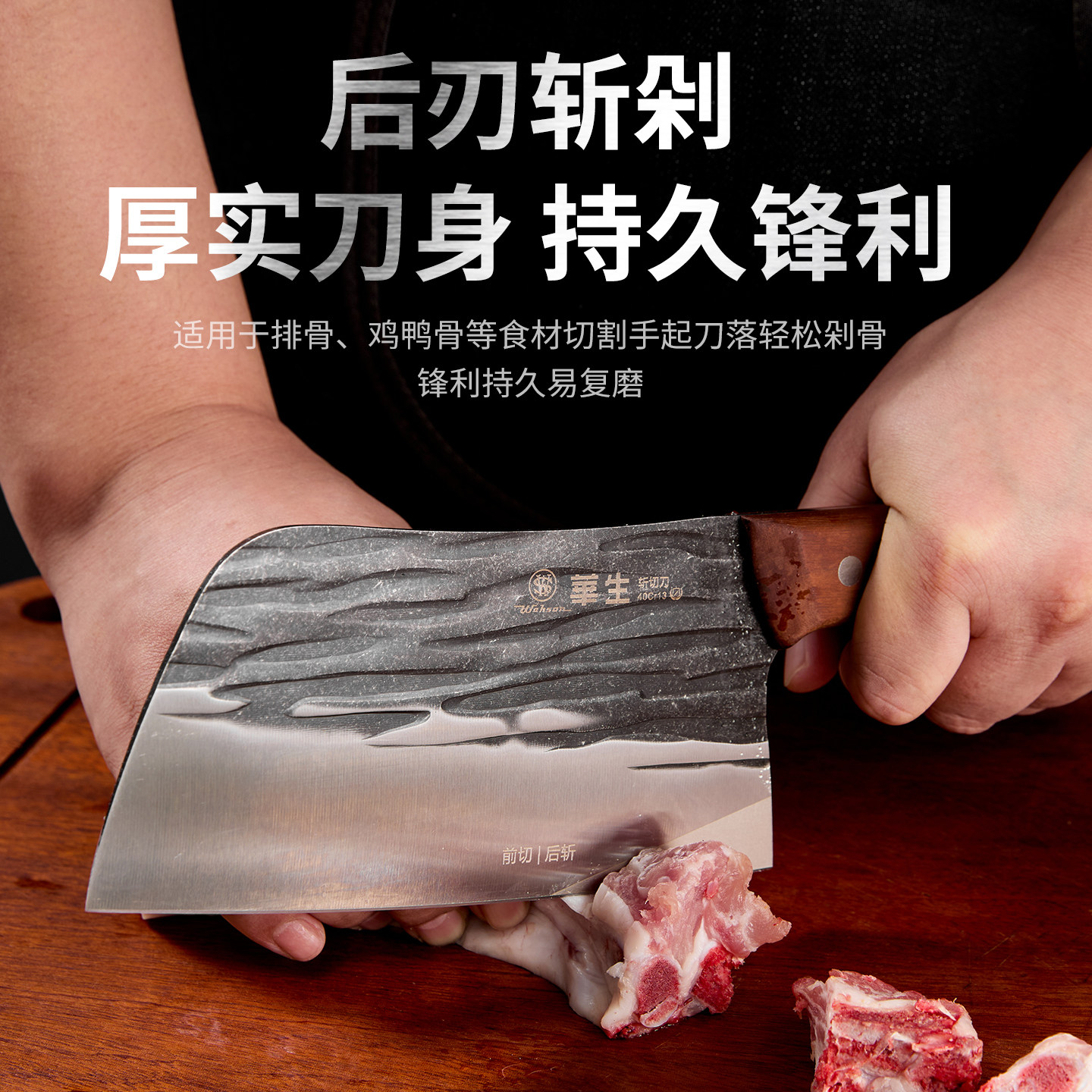 华生菜刀前切后砍家用锋利切菜刀斩骨刀厨房刀切片砍骨原装刀免磨