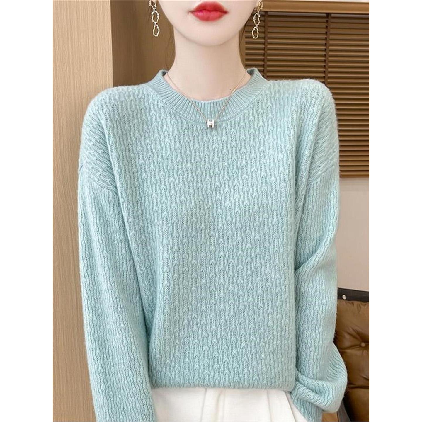 纯山羊绒长袖针织衫秋冬季高级感宽松时尚圆领打底衫上衣内搭毛衣