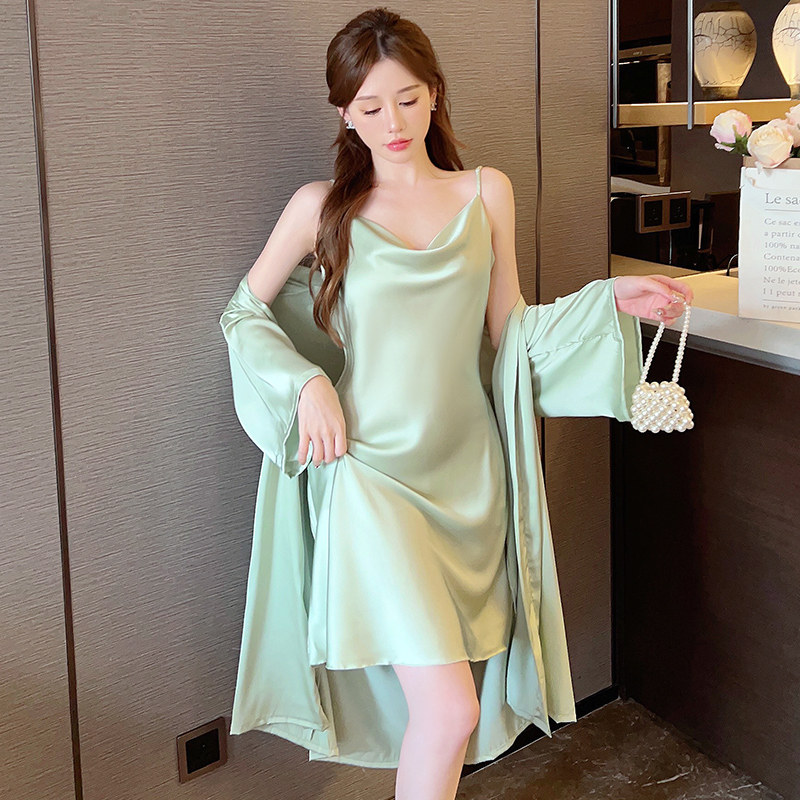 睡衣女性感春秋款吊带睡裙高级感仿真丝绸两件套睡袍女夏季家居服