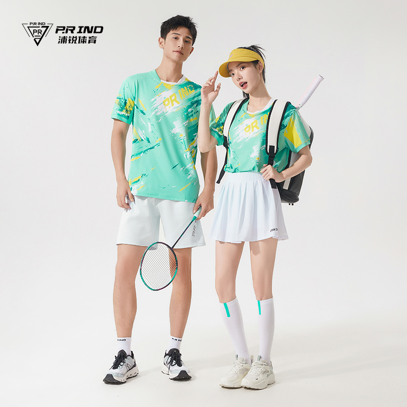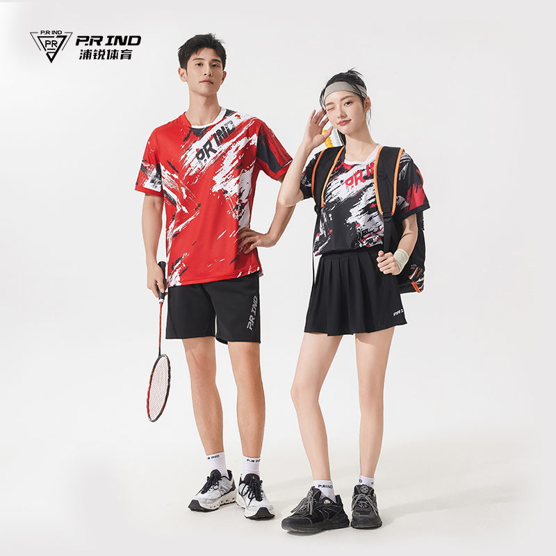 正品浦锐万花筒羽毛球服运动速干短袖男女吸汗大赛服训练运动套装