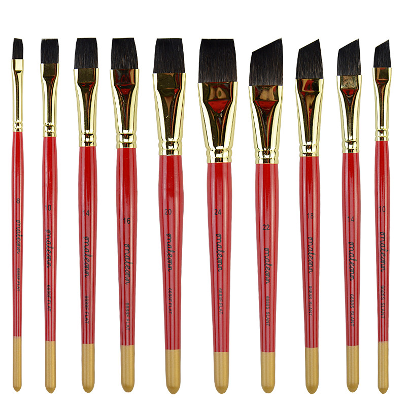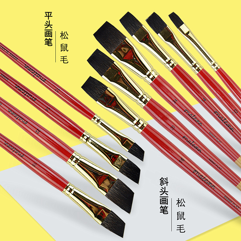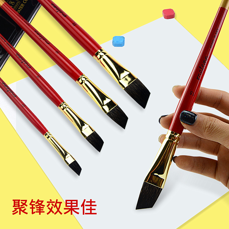 maleonn玛琅平头/斜头水彩笔6688 松鼠毛 偏软 吸水性强 美术专业排笔刷子专用笔刷软毛动物毛红胖子水彩画笔
