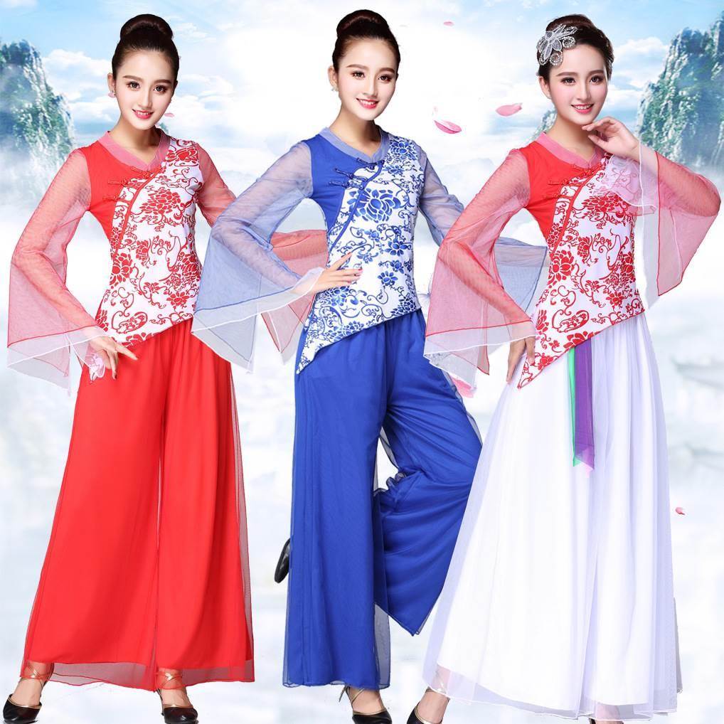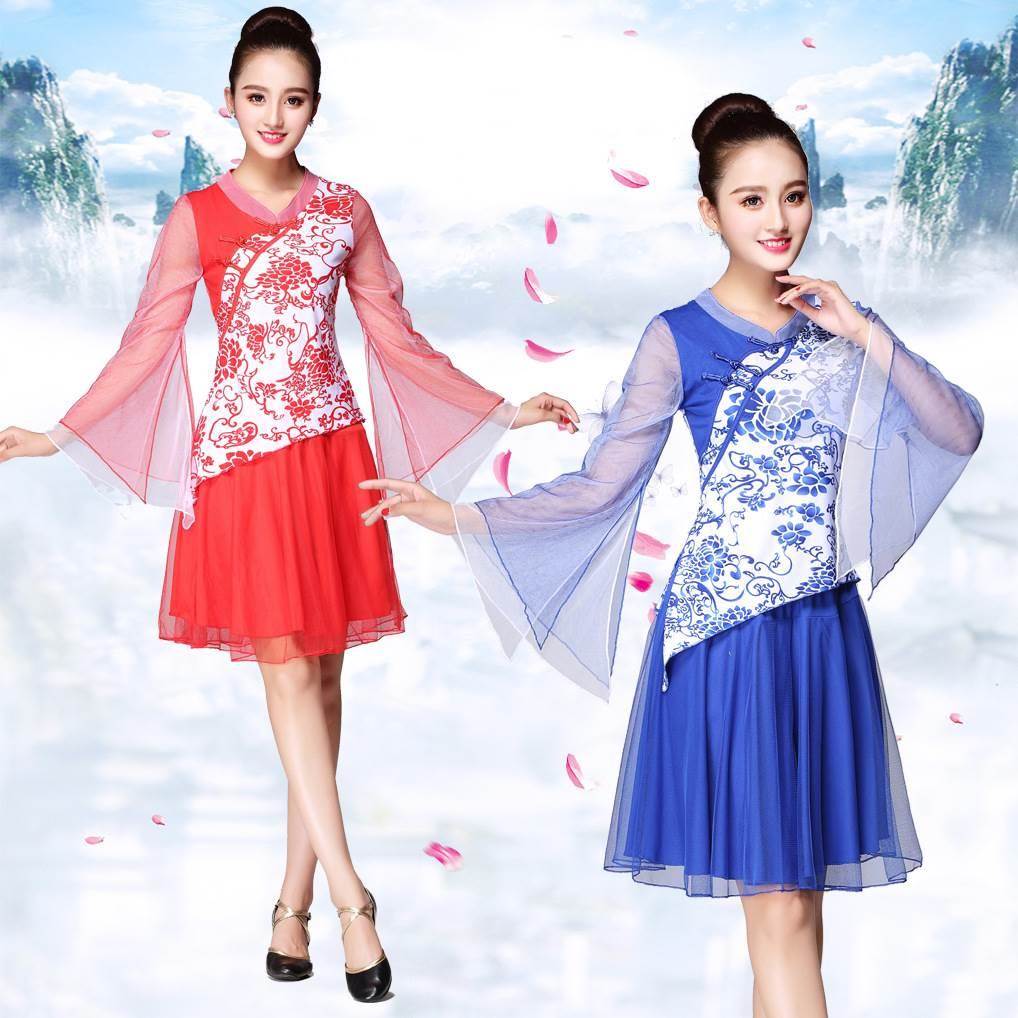 春英青花瓷广场舞服装新款套装民族风江南云袖春英演出服跳舞衣