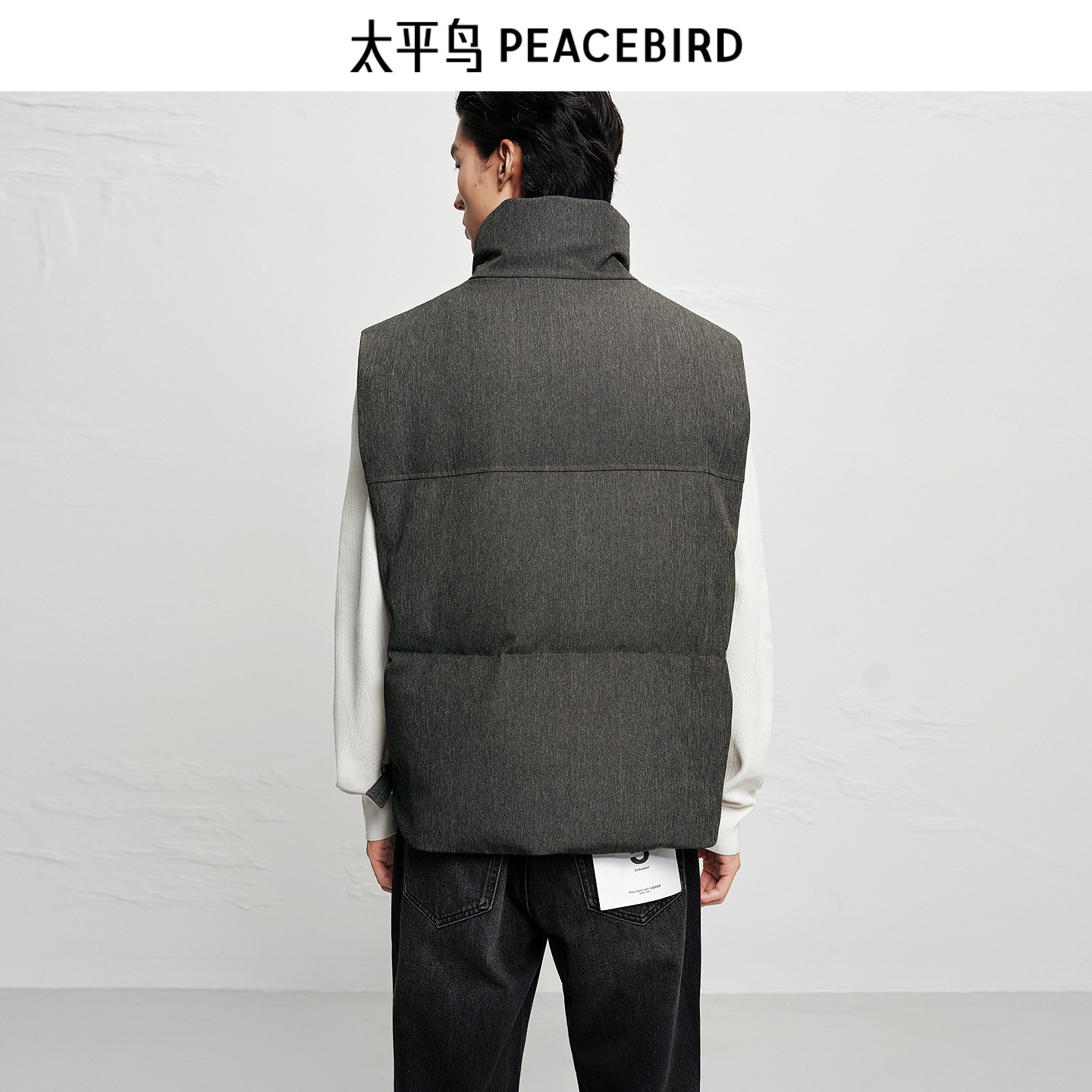 【商场同款】太平鸟男装立领羽绒马甲新款90白鸭绒背心B1AGF4B23