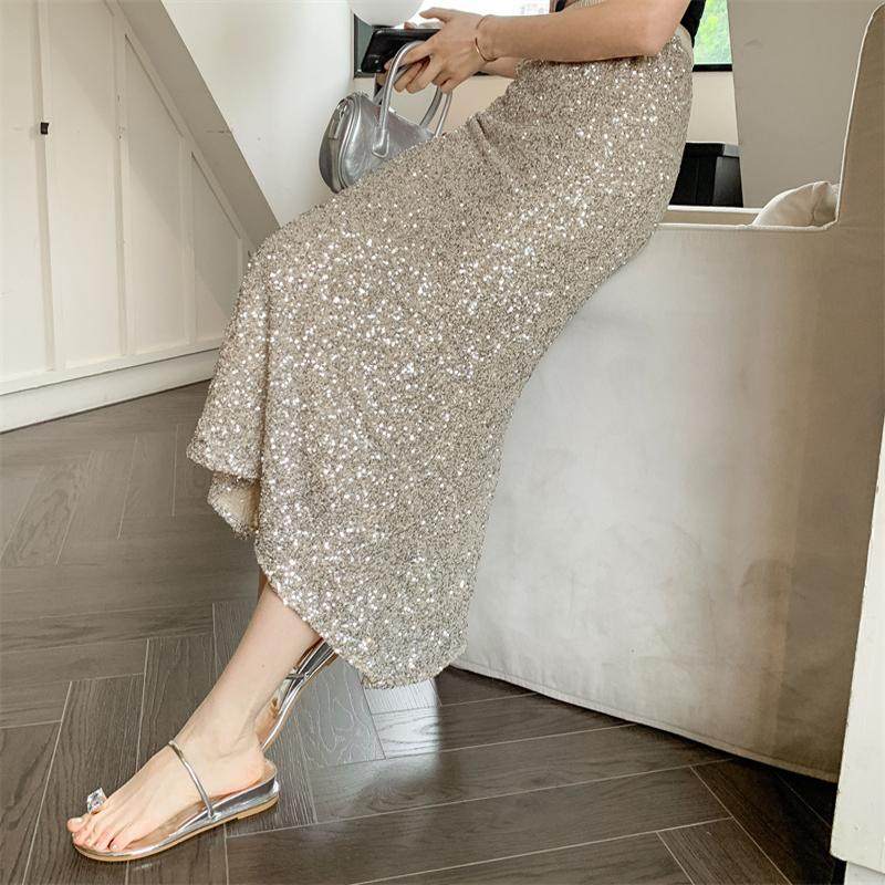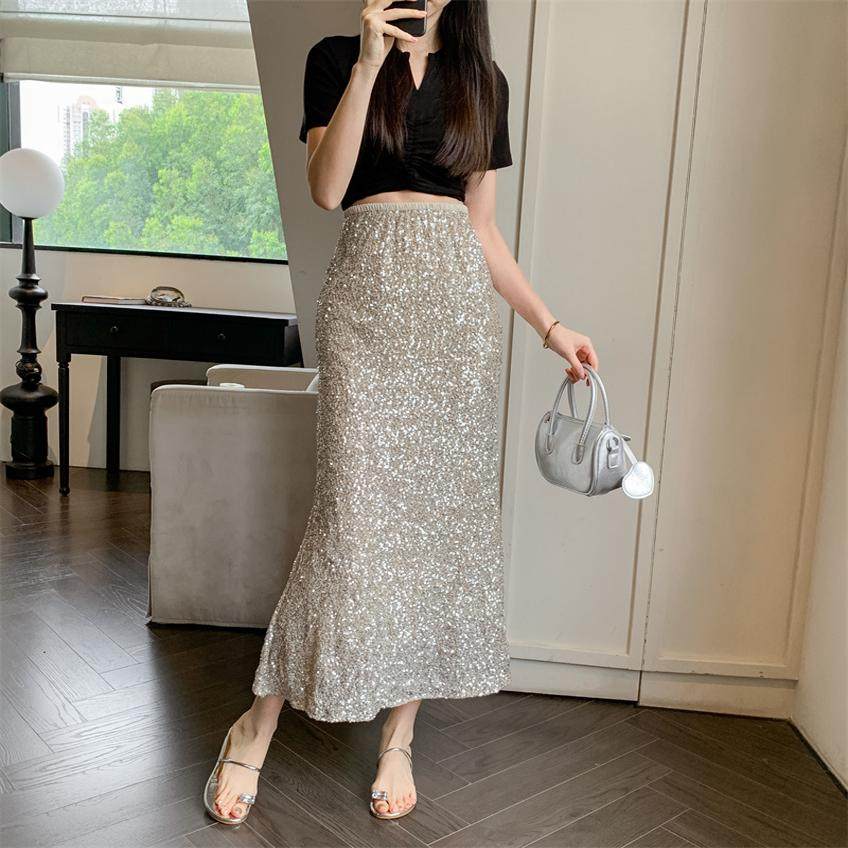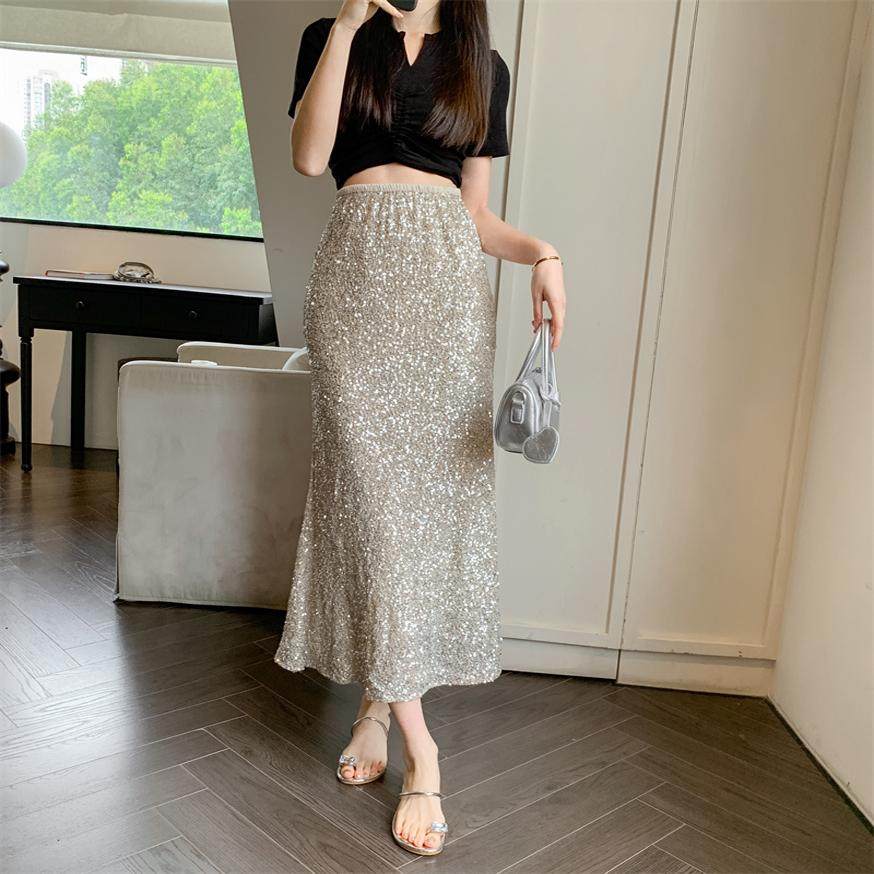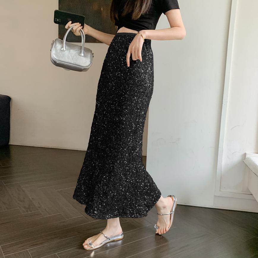 大码女装2025秋季新款重工亮片设计感小鱼尾半身裙高腰a字包臀裙