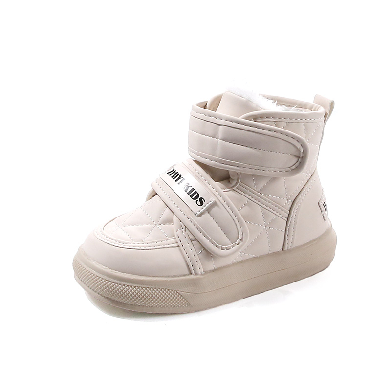 米色雪地靴女童短靴魔术贴儿童鞋子大棉鞋2025冬季新款中大童冬鞋