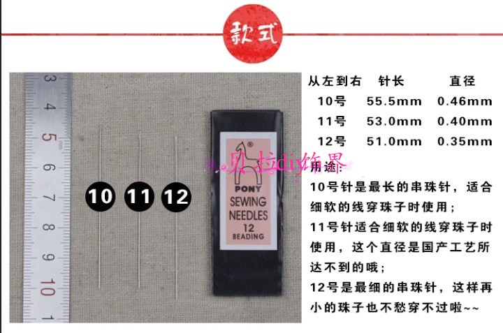 印度Pony马牌串珠针 手工diy布艺服装手缝针缝衣针 织补针细长针