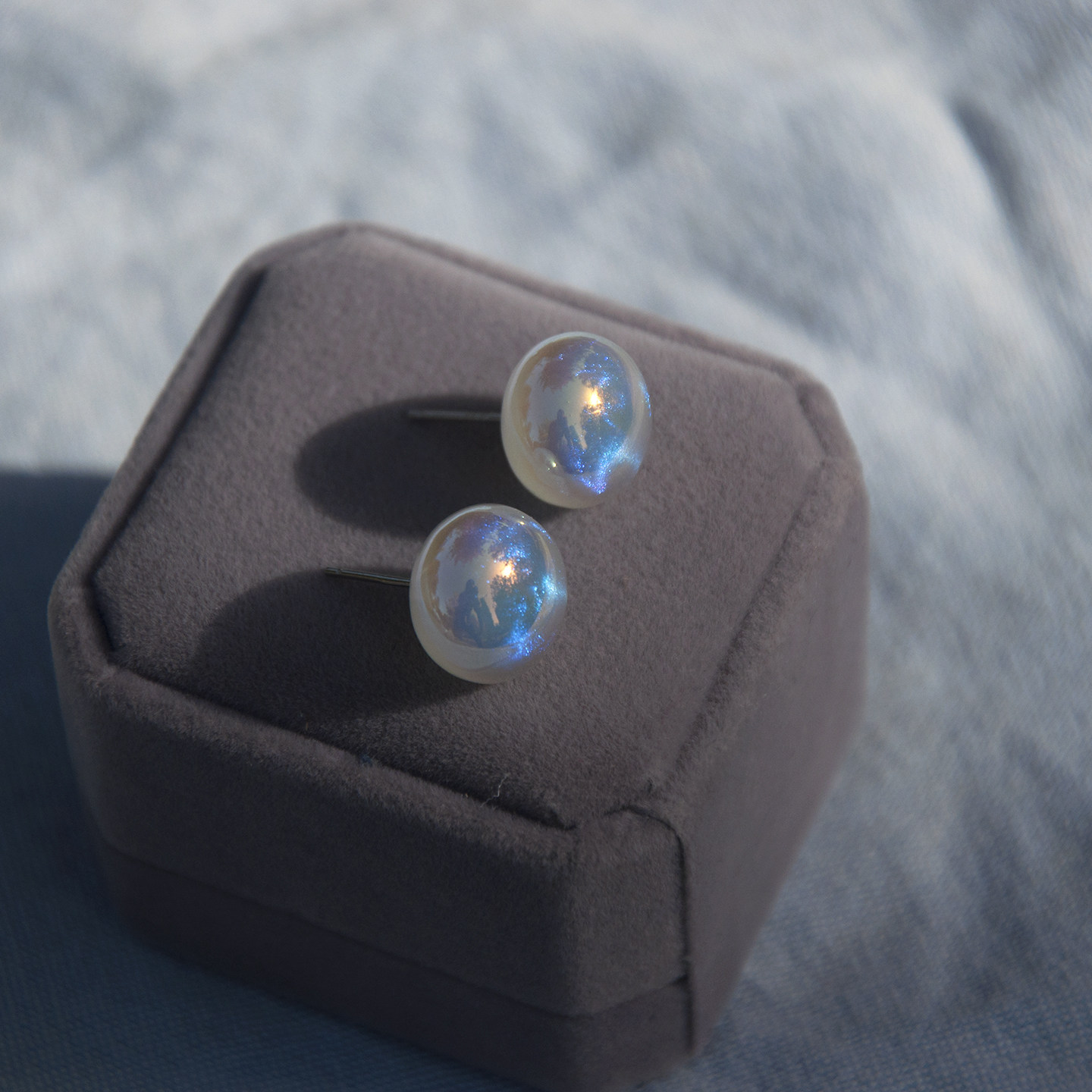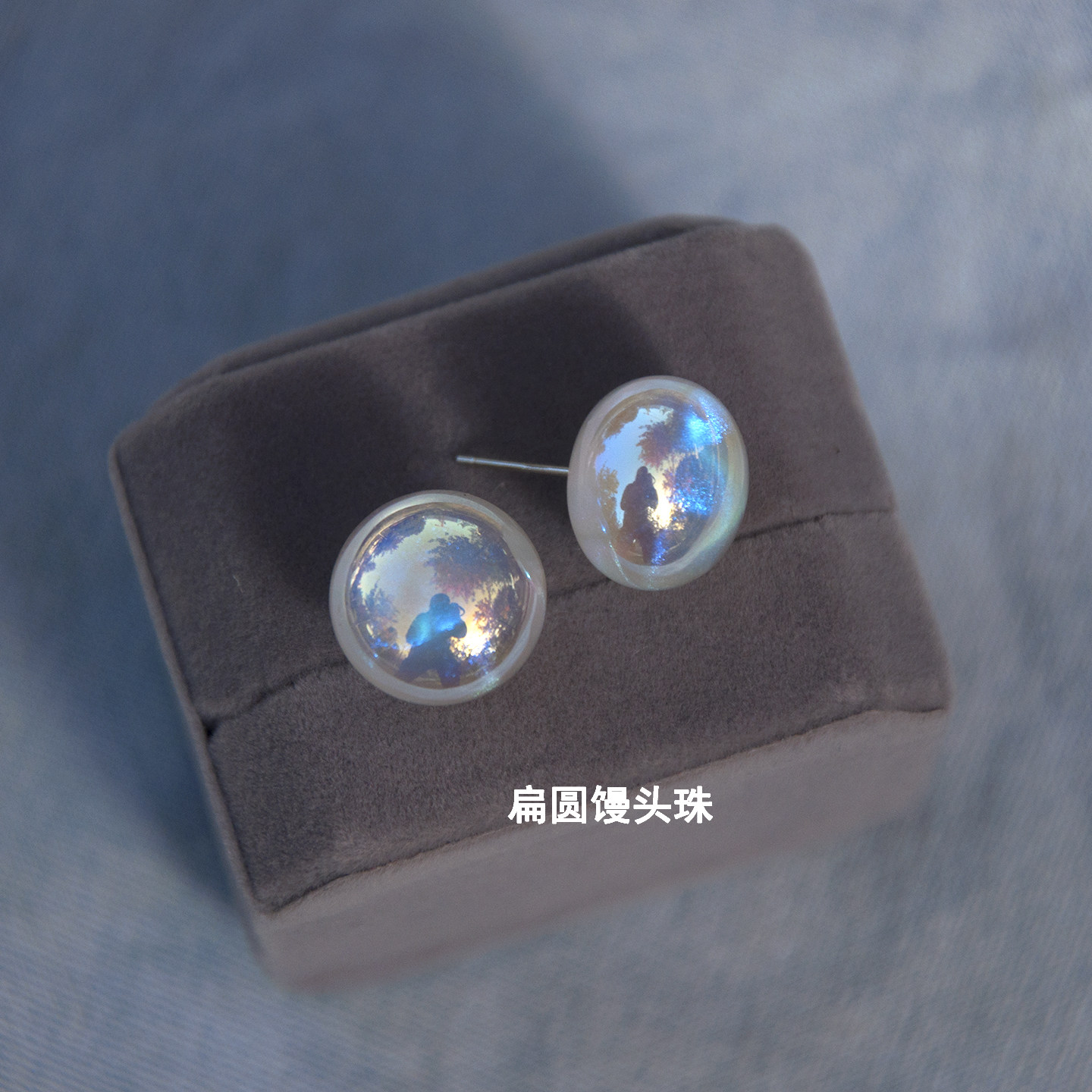 人鱼姬珍珠耳钉女款s925纯银轻奢高级感耳饰扁圆馒头小众设计耳环