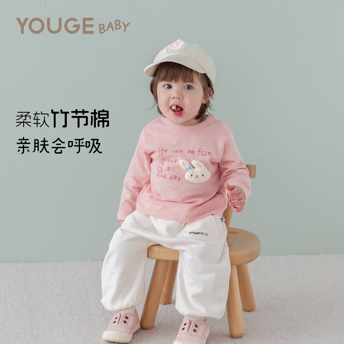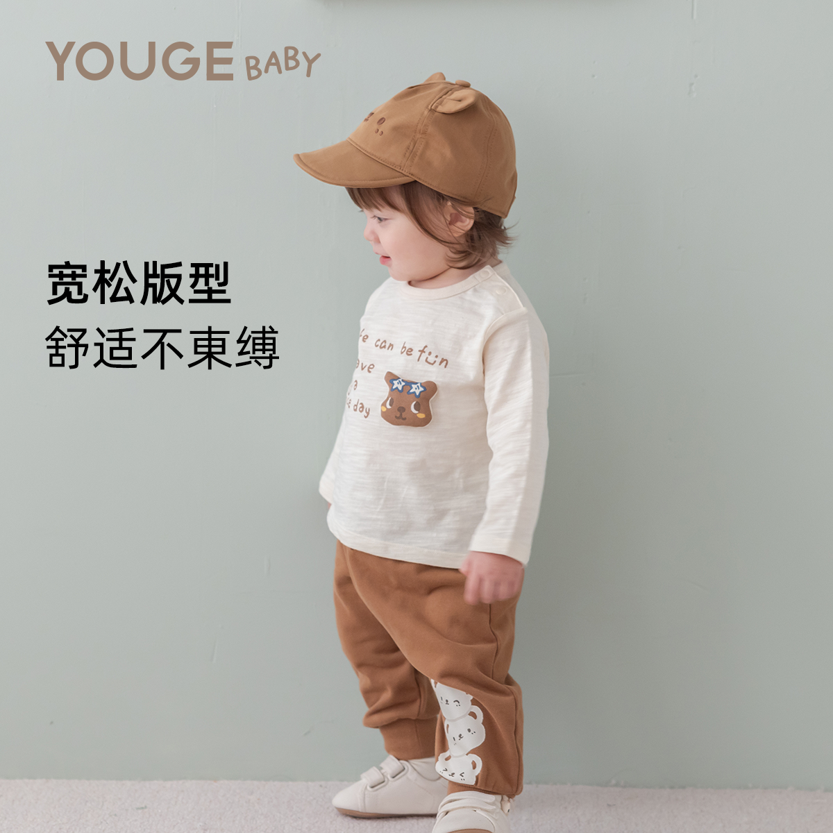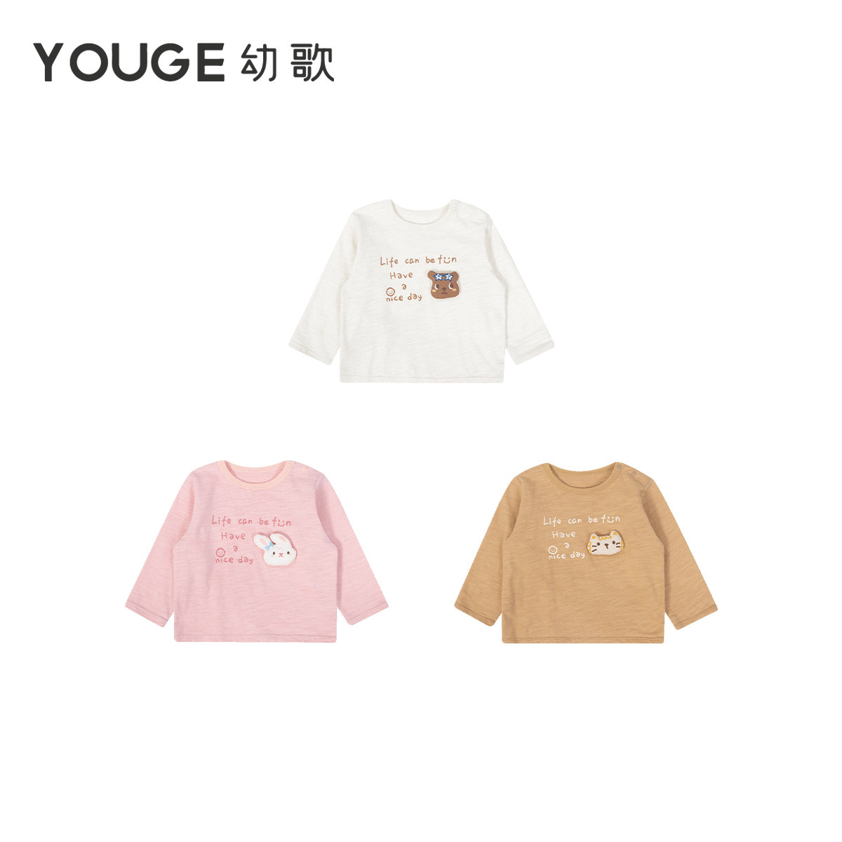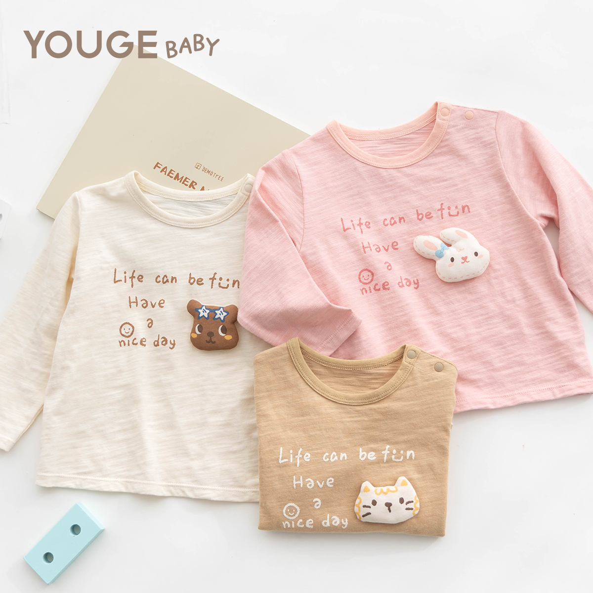 【竹节棉】YOUGE幼歌婴幼儿新款圆领卡通玩偶长袖打底趣味印花T恤