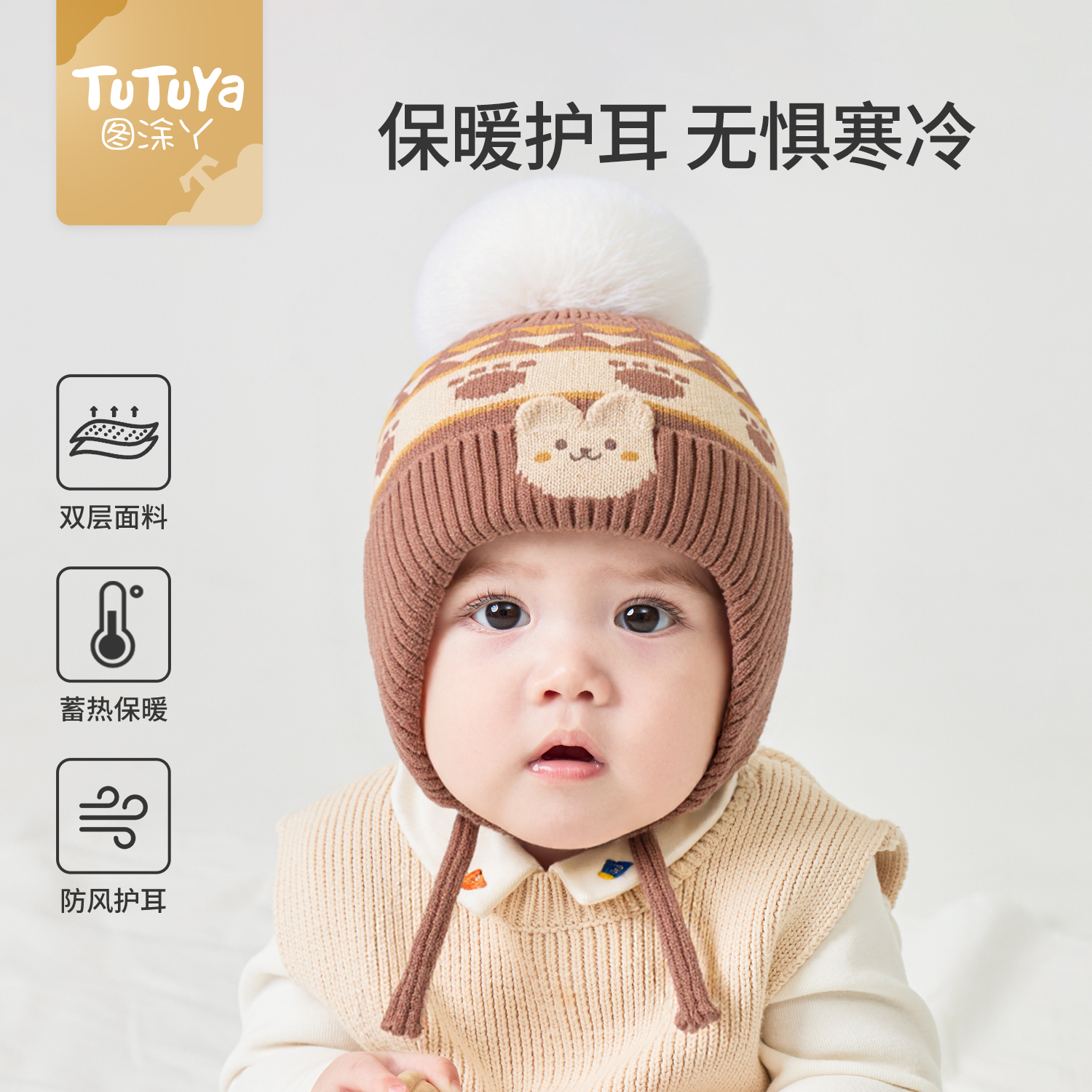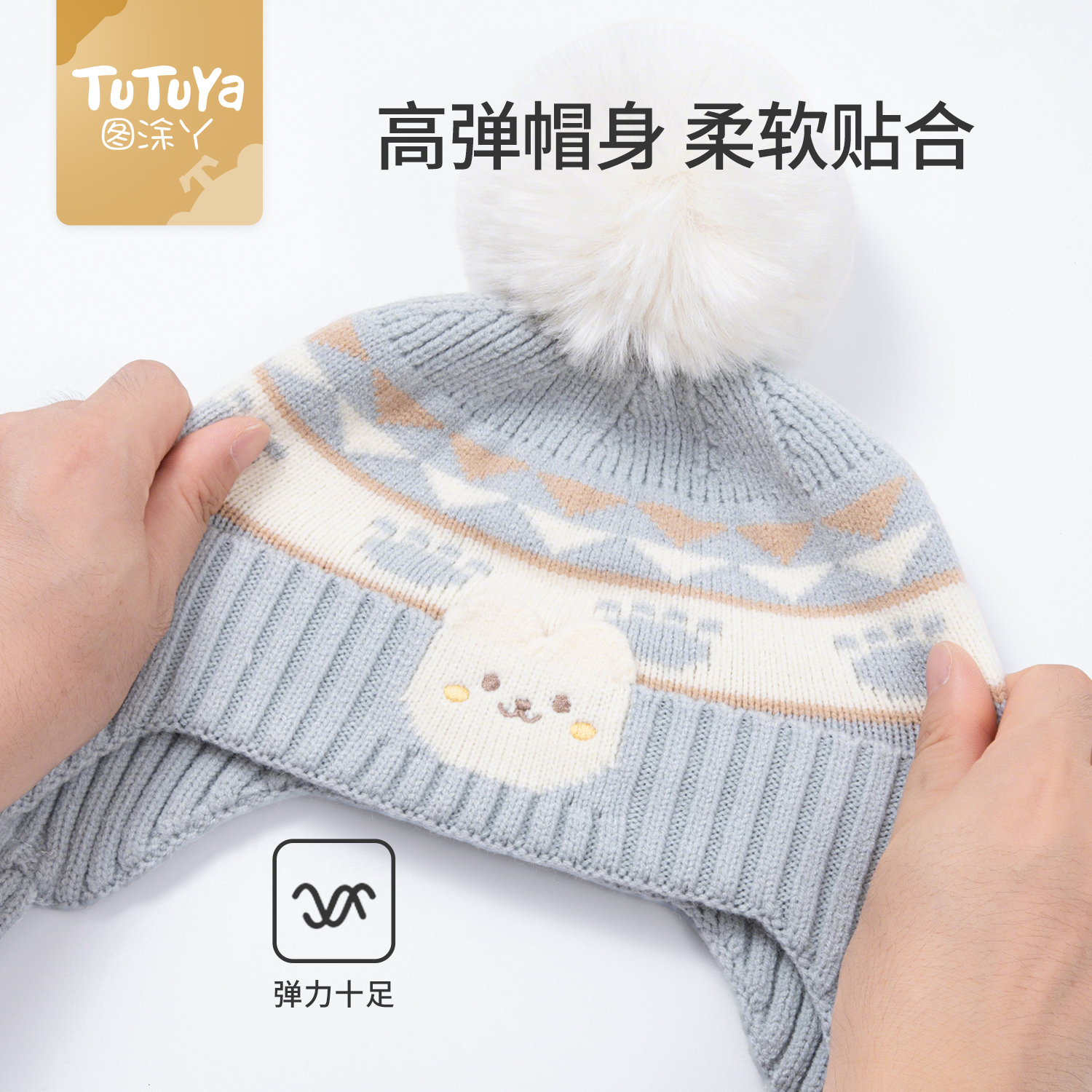 儿童帽子冬季男宝宝保暖毛线帽女童秋冬款外出防寒加厚针织护耳帽