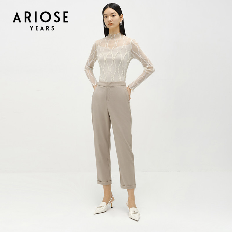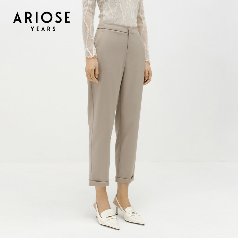 ARIOSEYEARS春新品高腰九分直筒休闲垂坠西装裤套