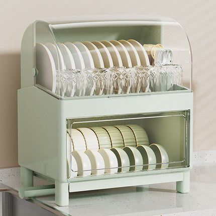 厨房双层透气碗筷收纳盒沥水碗架带盖装碗碟盘置物架大容量餐具柜