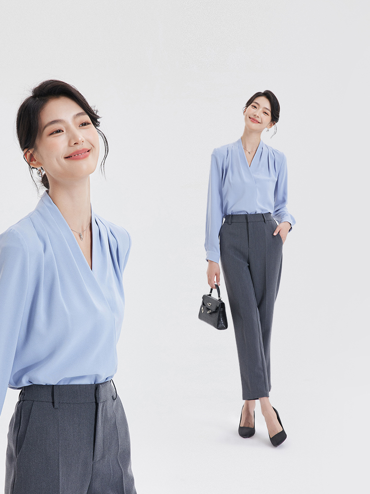 图曼朵灰色职业西装裤女秋季直筒通勤银行工装裤小个子高级感裤子