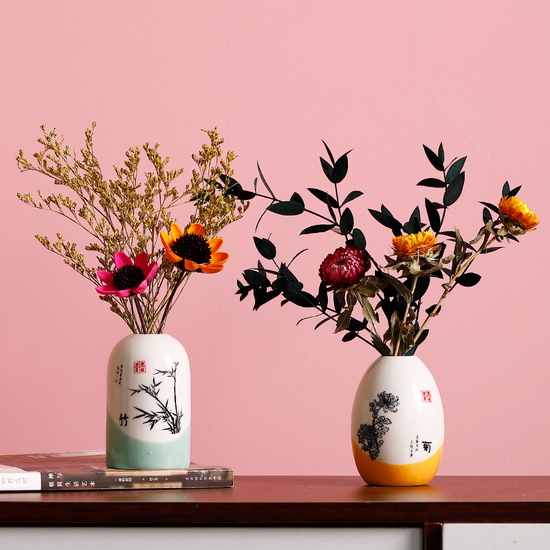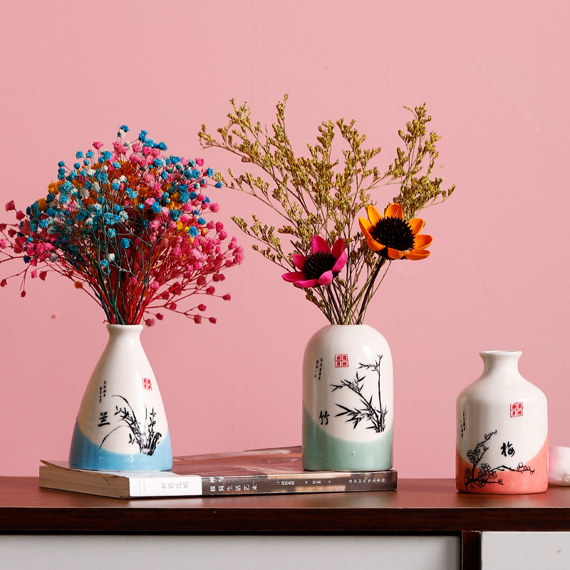 梅兰竹菊陶瓷花瓶摆件客厅插花卧室干花花束电视柜玄关家居装饰品