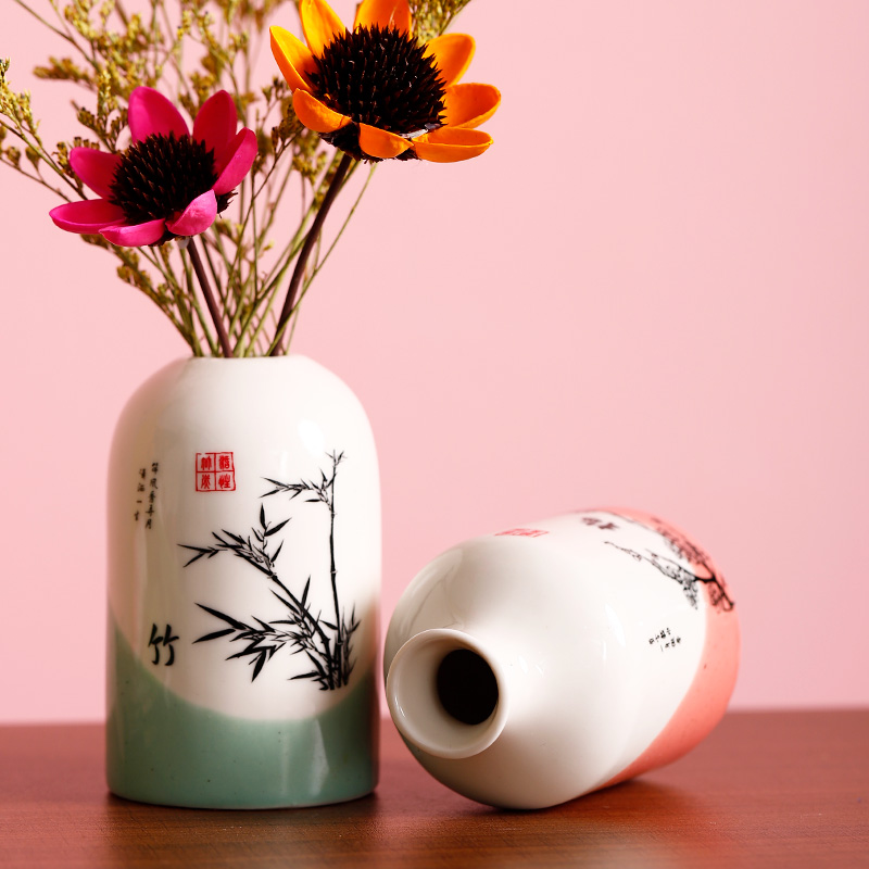 梅兰竹菊陶瓷花瓶干花客厅摆件
