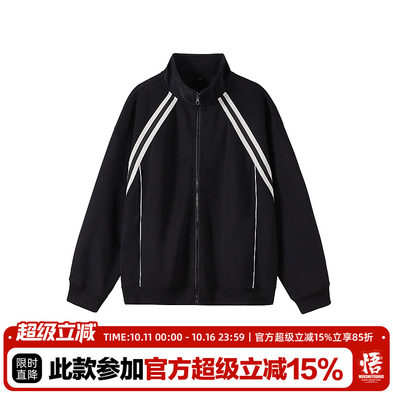 悟空有货街头复古织带拼接开衫卫衣男女潮牌宽松情侣休闲运动外套