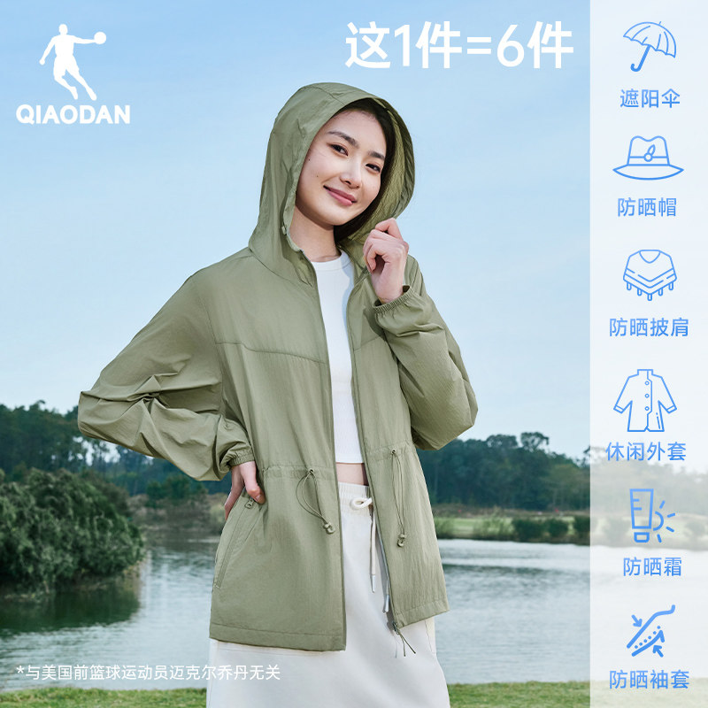 乔丹防晒衣女士2025夏季新款UPF100+户外连帽冰感轻薄宽松皮肤衣
