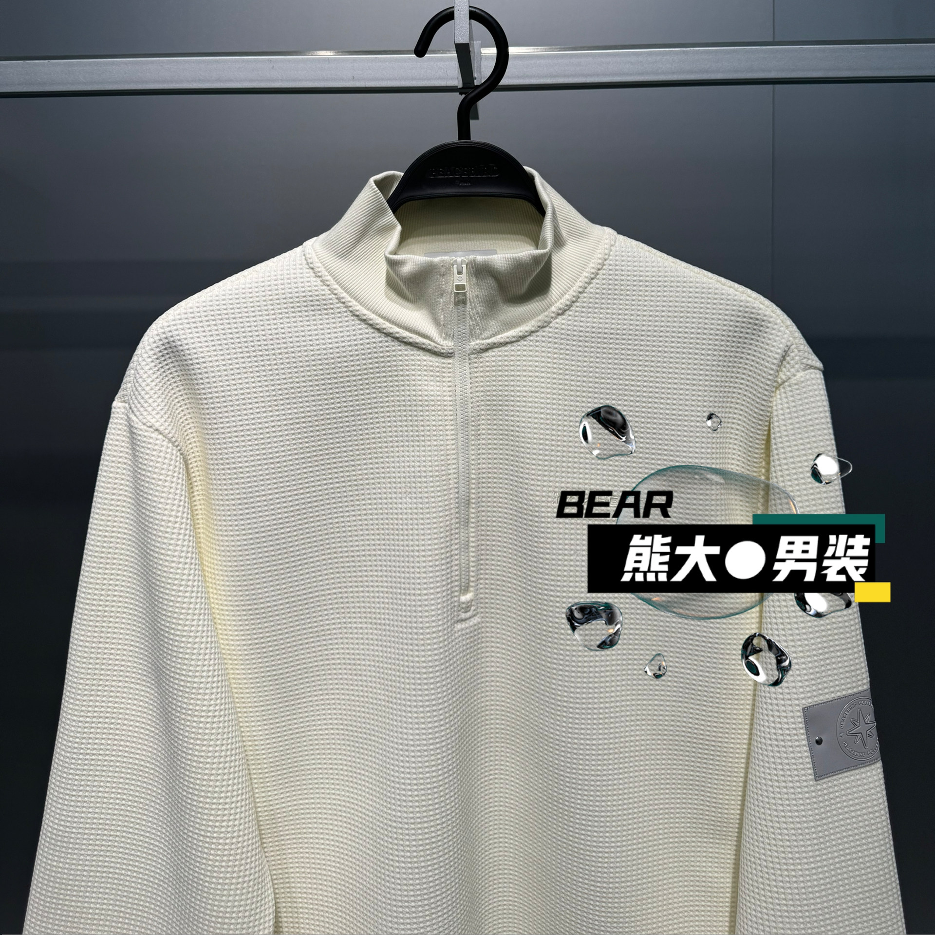 B2CRF4516太平鸟男装2025冬季新款华夫格休闲百搭宽松拉链卫衣729