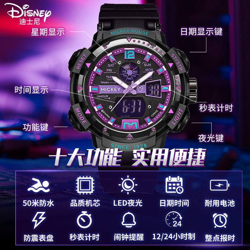 迪士尼手表男款学生初高中生2025年新款运动青少年儿童男生电子表