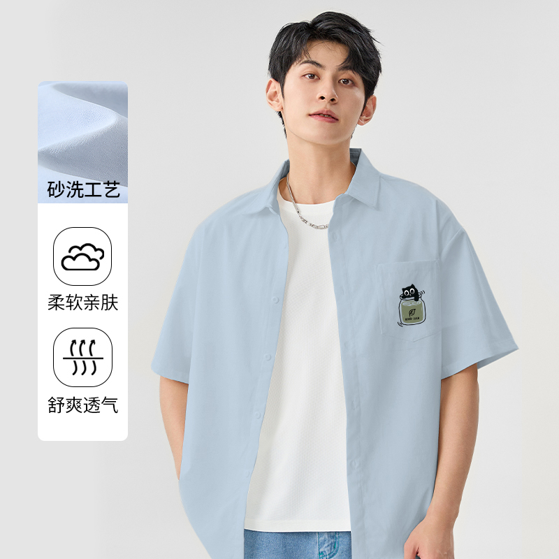 Baleno/班尼路S&K系列美式绿色冰丝衬衫男夏季百搭男士短袖t恤LF