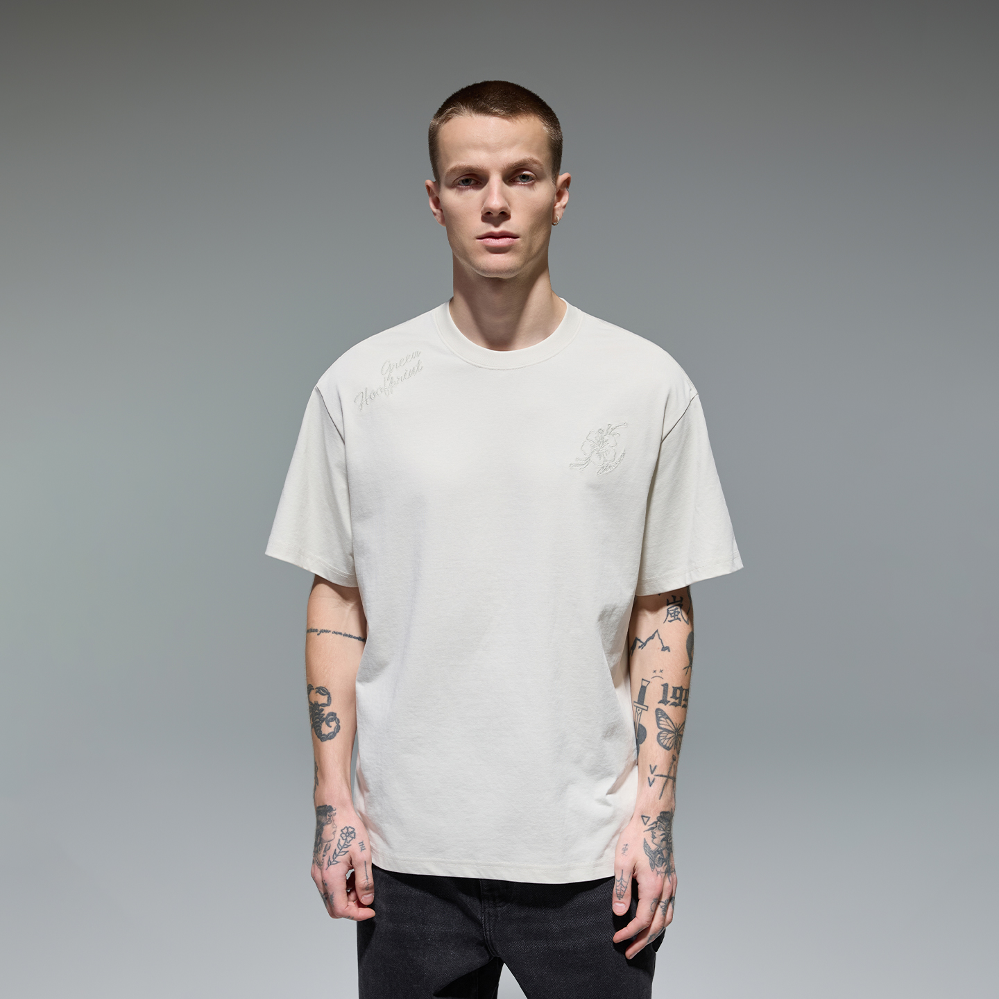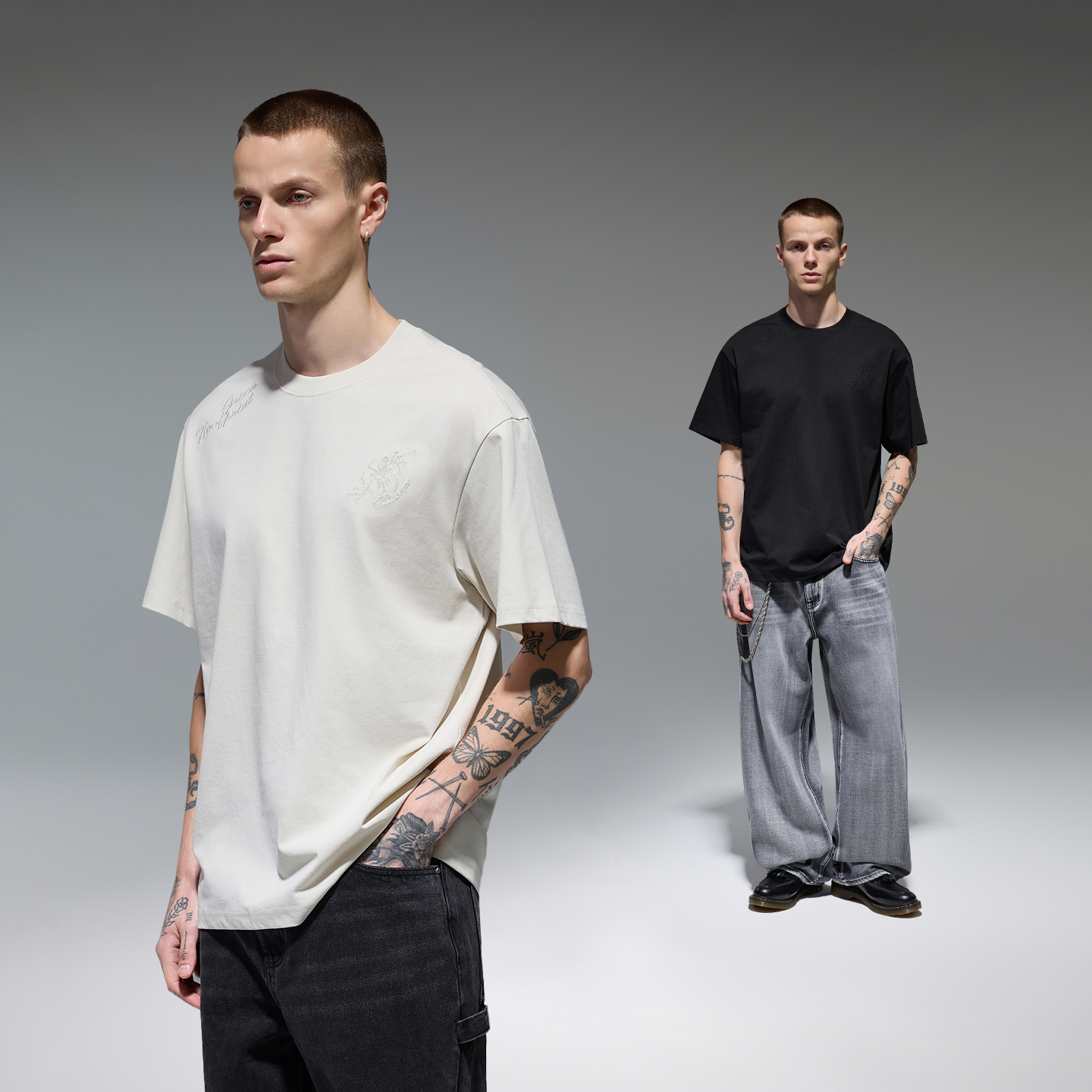 CHINISM赤尘花卉刺绣短袖T恤男