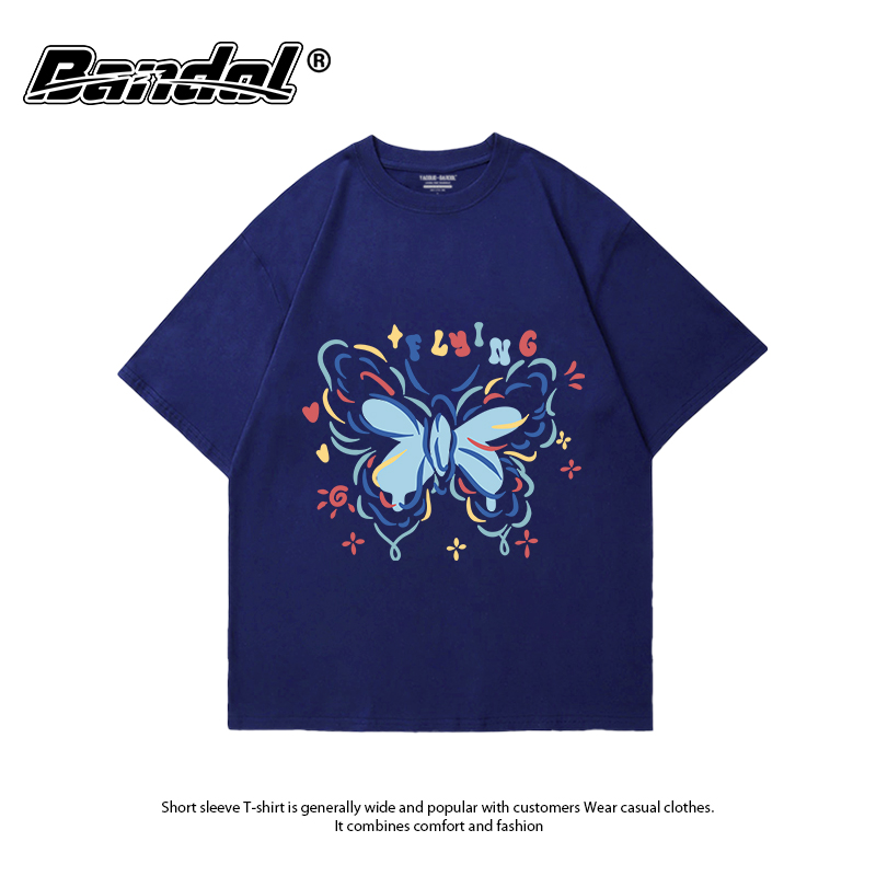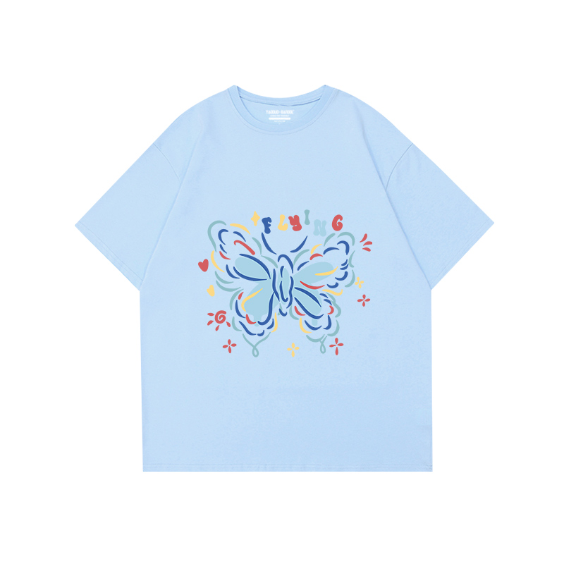 ins韩系卡通手绘蝴蝶少女感学院风黑色短袖t恤女显瘦宽松正肩上衣