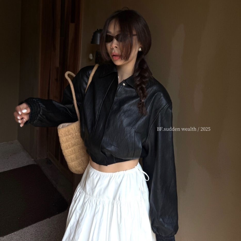 欧货时髦酷飒翻领拉链短款皮衣外套女宽松气质减龄小个子pu皮夹克