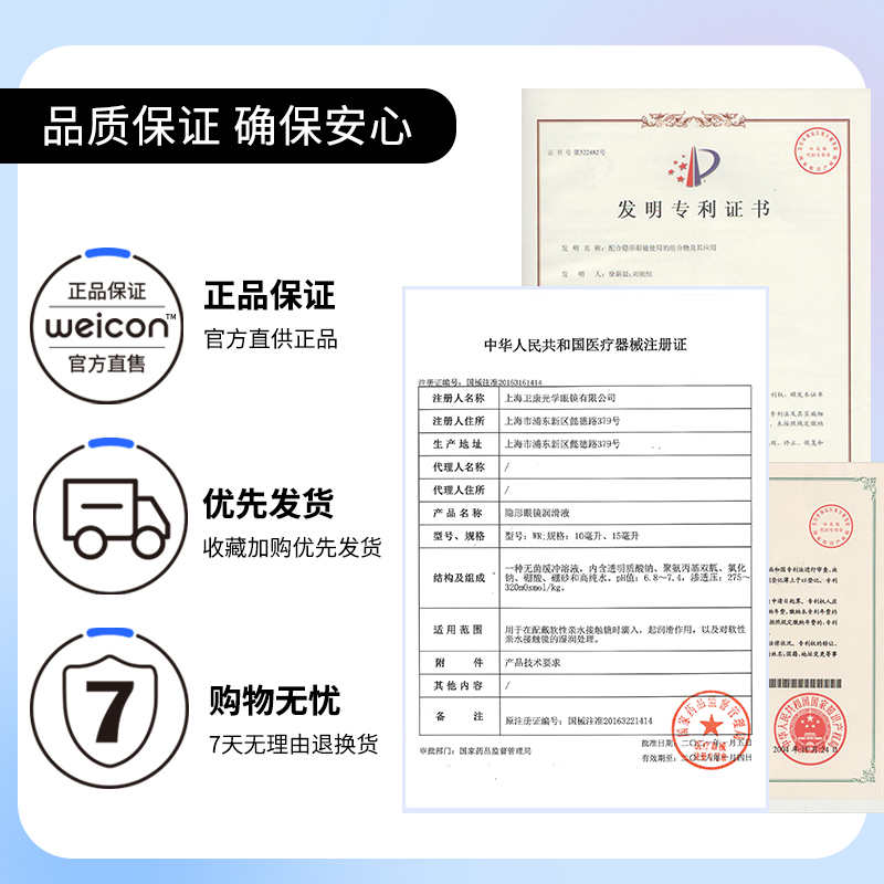 卫康魅隐形近视眼镜玻尿酸HA润滑液15ml润眼液水润护理美瞳药水