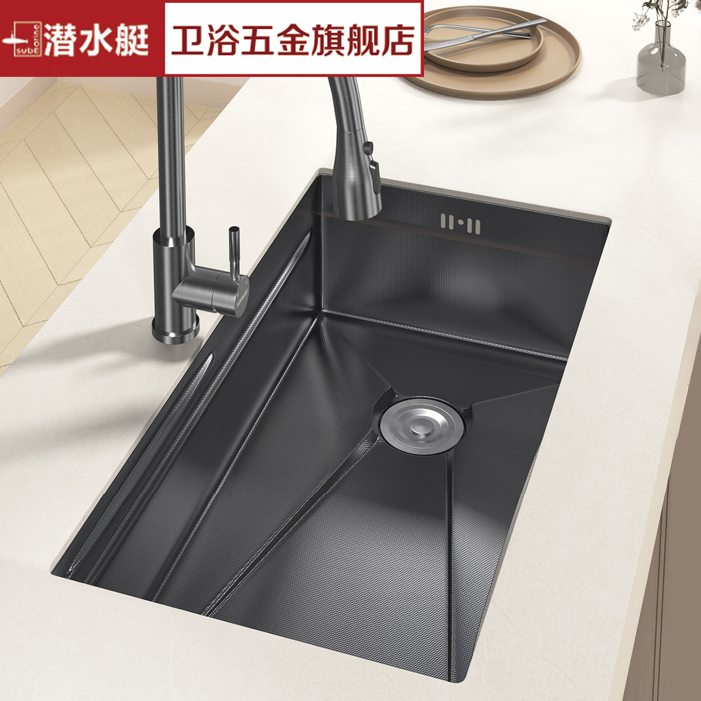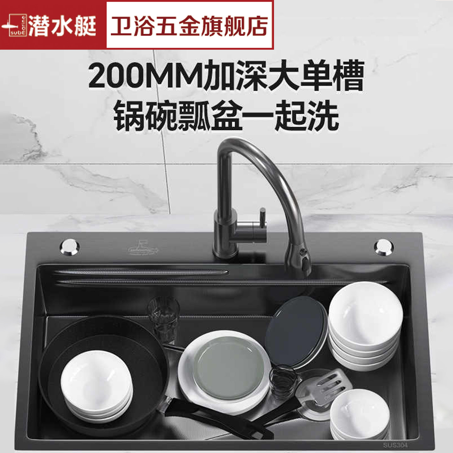 潜水艇大单槽厨房洗菜盆304不锈钢水槽7546手工洗碗池洗菜盆枪灰