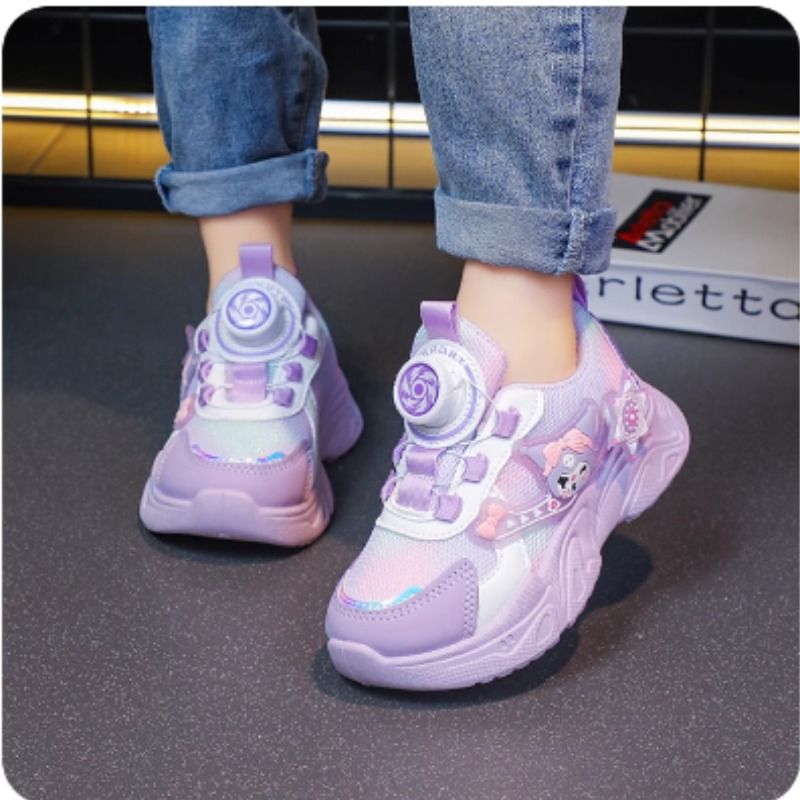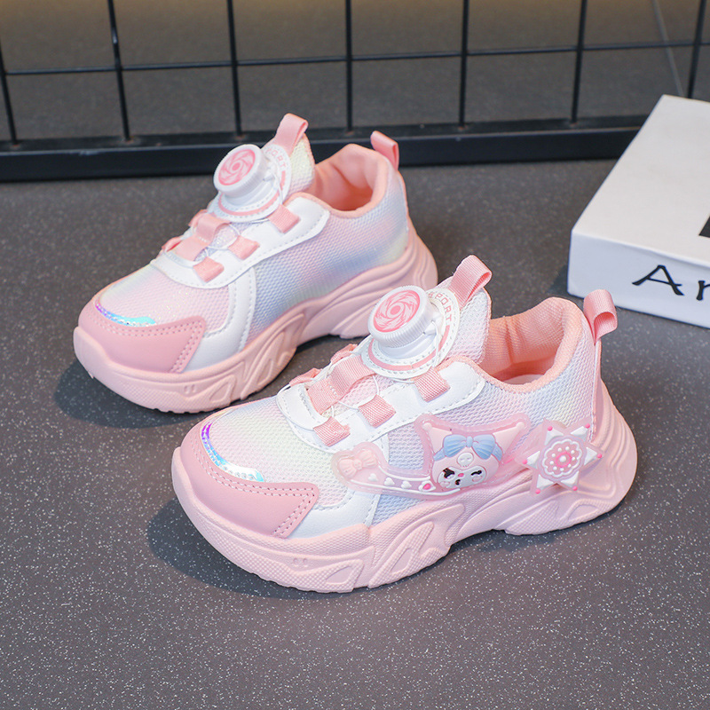 网面卡通可爱女童鞋子2025春秋新款旋转纽扣运动鞋透气儿童老爹鞋