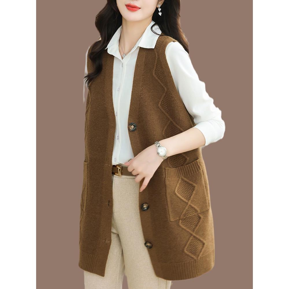 羊毛针织背心马甲女新款2023春秋中长款外搭披肩大码胖MM毛衣外套