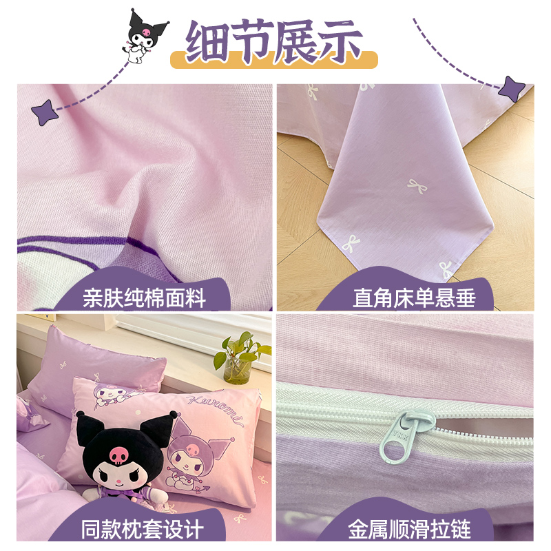 2025新款库洛米纯棉床上四件套公主风全棉被套床单三件套儿童床品