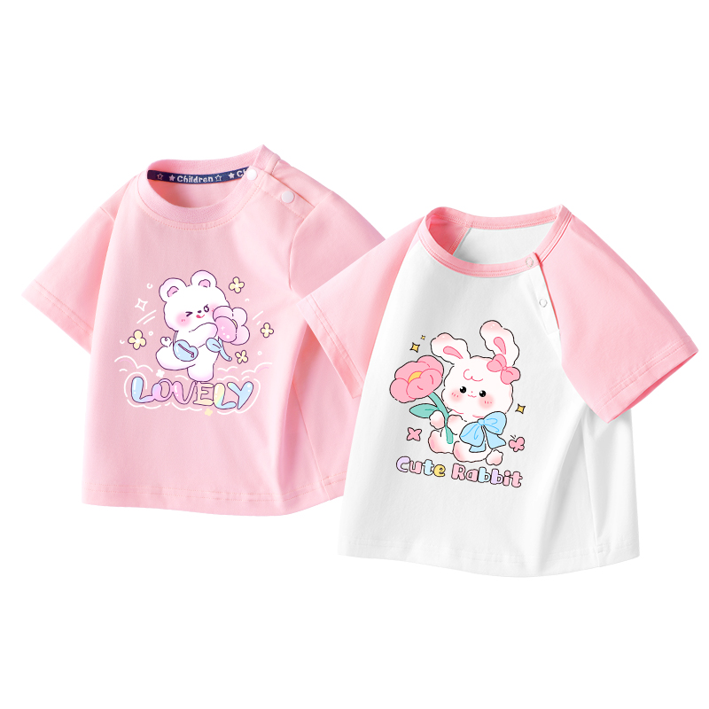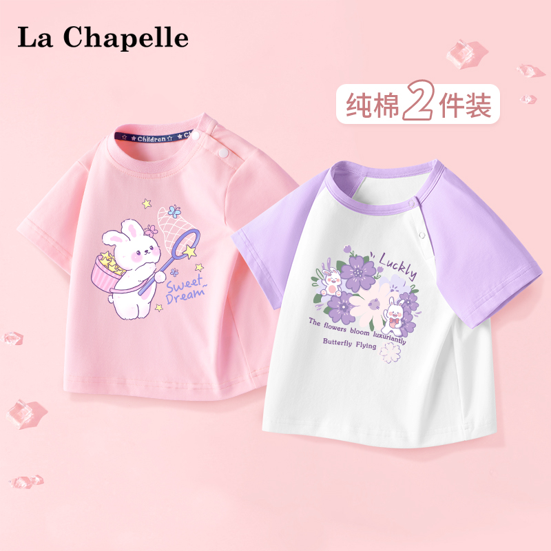 拉夏贝尔女童短袖t恤夏季女宝宝纯棉卡通上衣儿童洋气半袖体恤衫