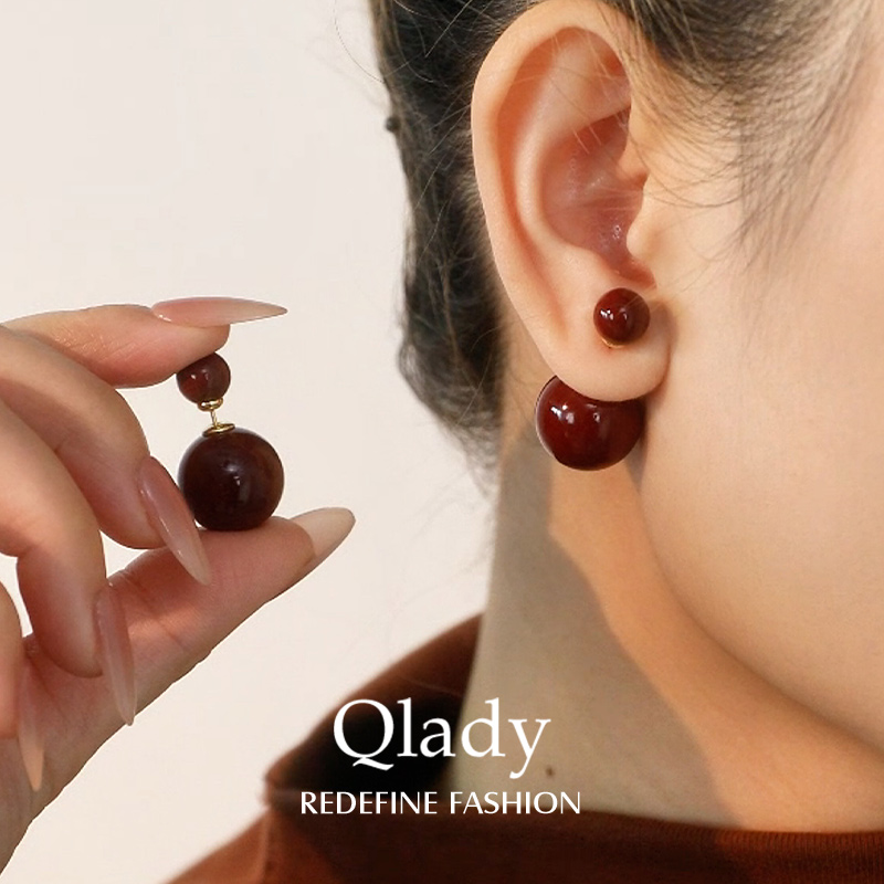 双面红色耳钉耳环2025新款爆款高级感轻奢气质耳饰女独特秋冬精致