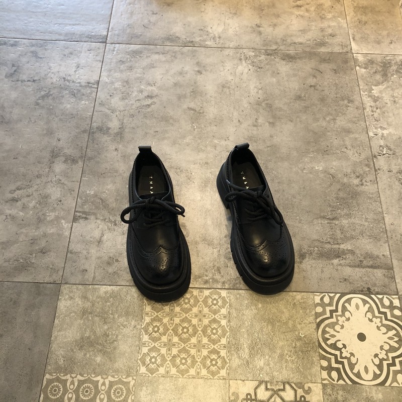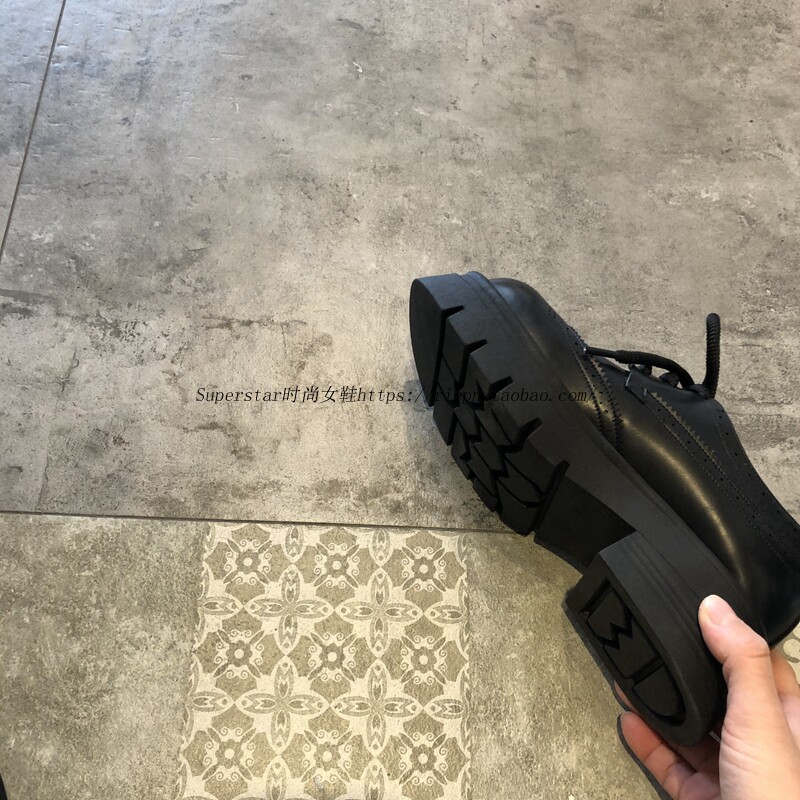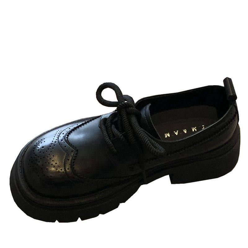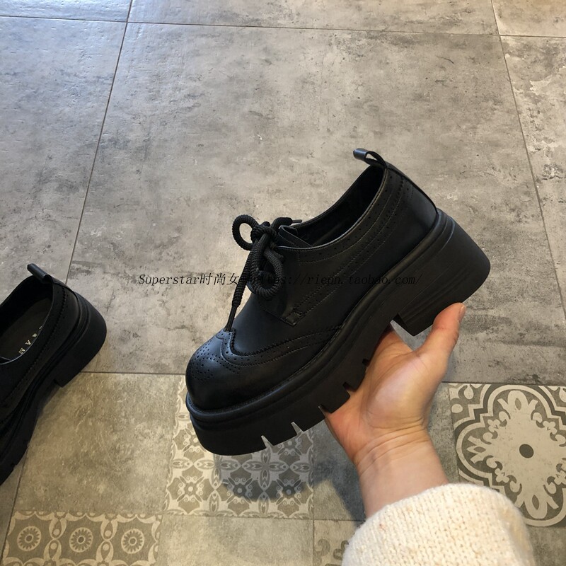 2025春季新款真皮厚底小皮鞋女复古英伦百搭黑色女鞋系带圆头单鞋