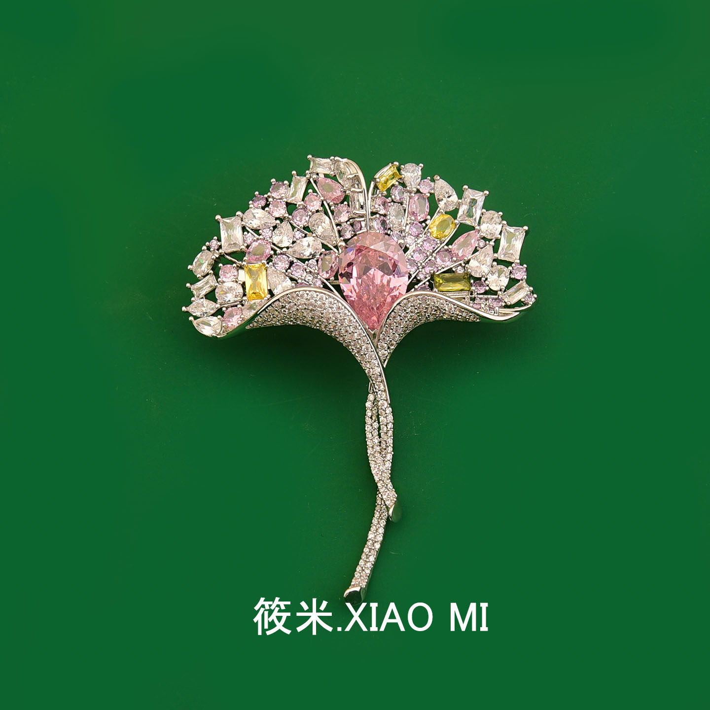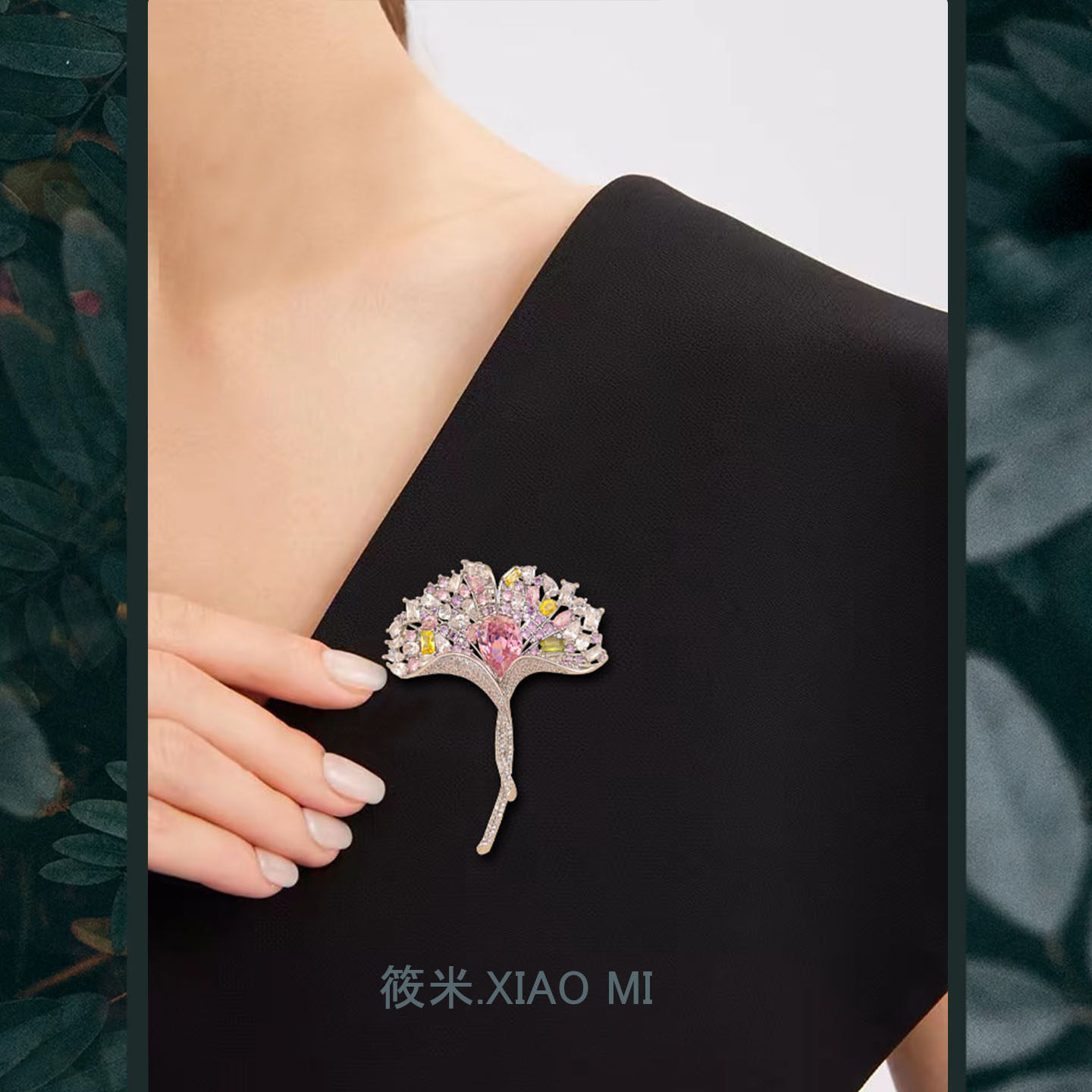 XIAOMI彩色季节流光水晶银杏叶胸针西装礼服搭配饰品闪耀精致胸花