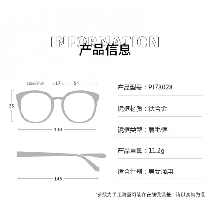 帕莎眼镜眉毛框时尚潮流钛合金男士商务眼镜架可配近视镜PJ78028