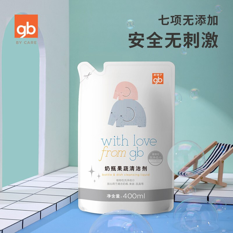 gb好孩子婴儿奶瓶清洁剂儿童专用餐具清洗剂宝宝果蔬清洗液补充装