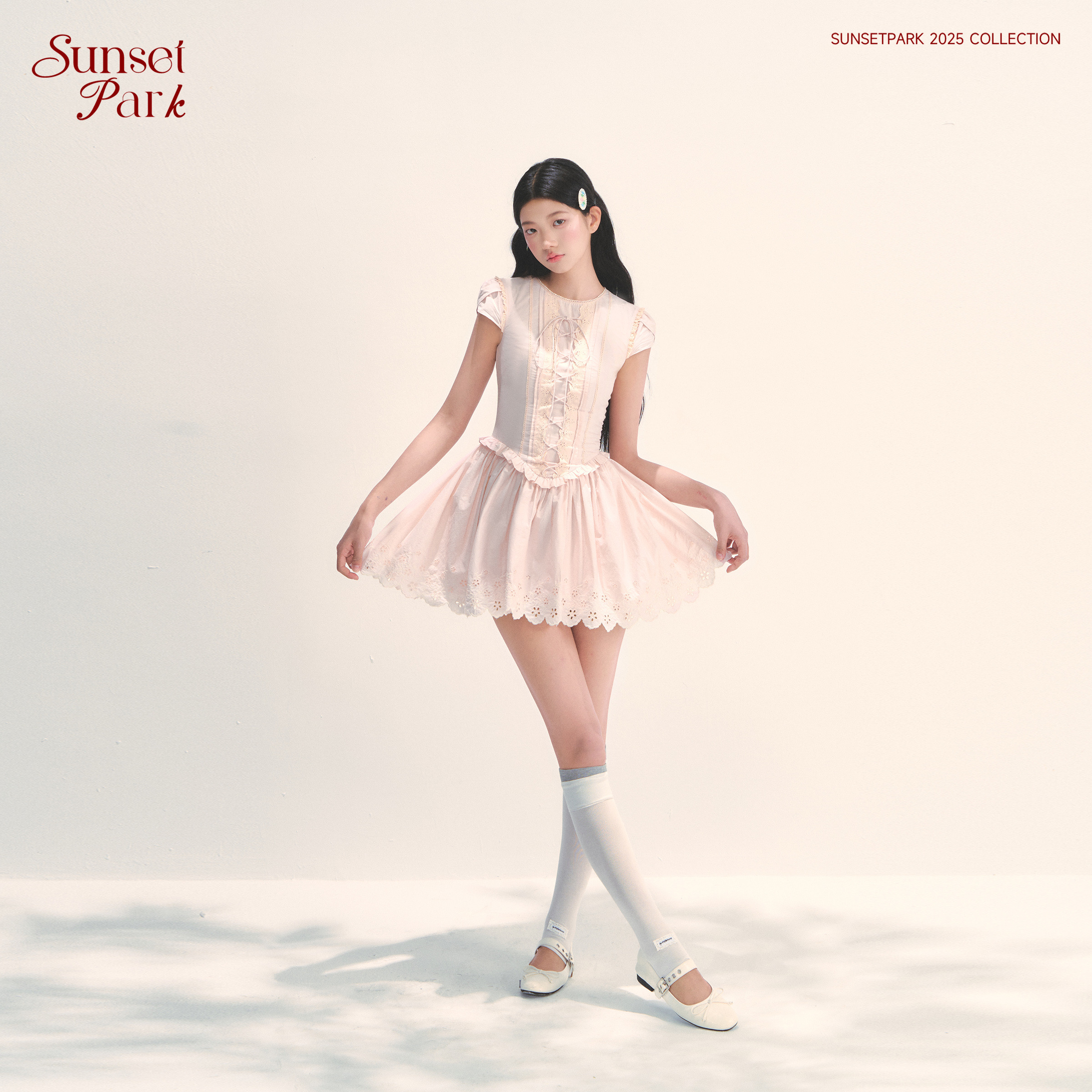 SunsetPark日落公园 "安静大小姐"粉色刺绣收腰公主风茶歇连衣裙
