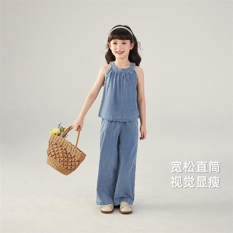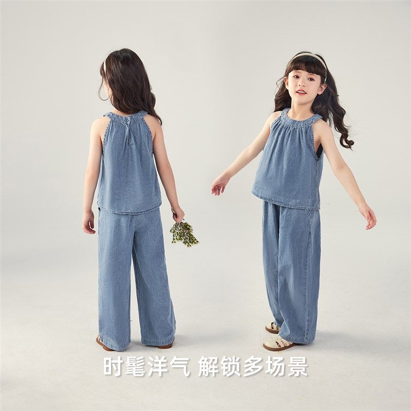 [7A抗菌]女童夏装套装儿童洋气纯棉两件套法式童装女大童夏季衣服