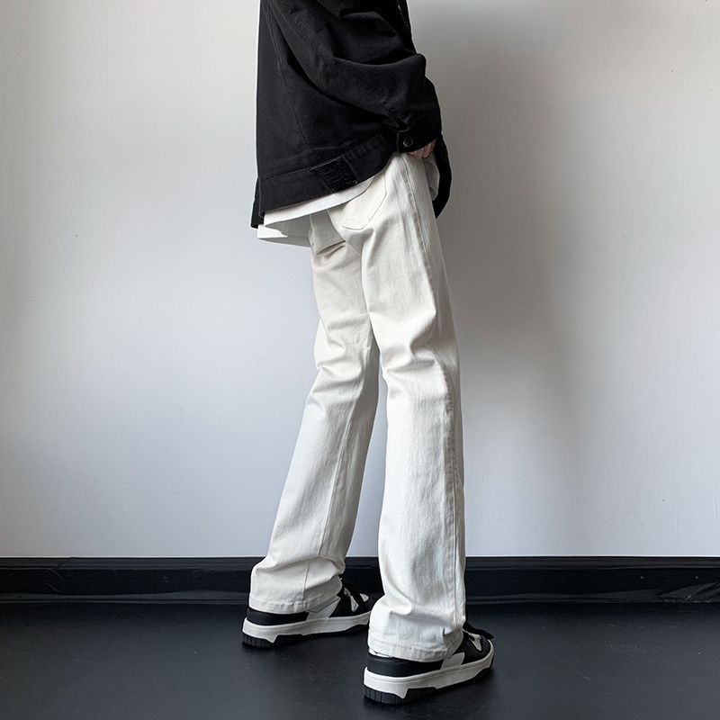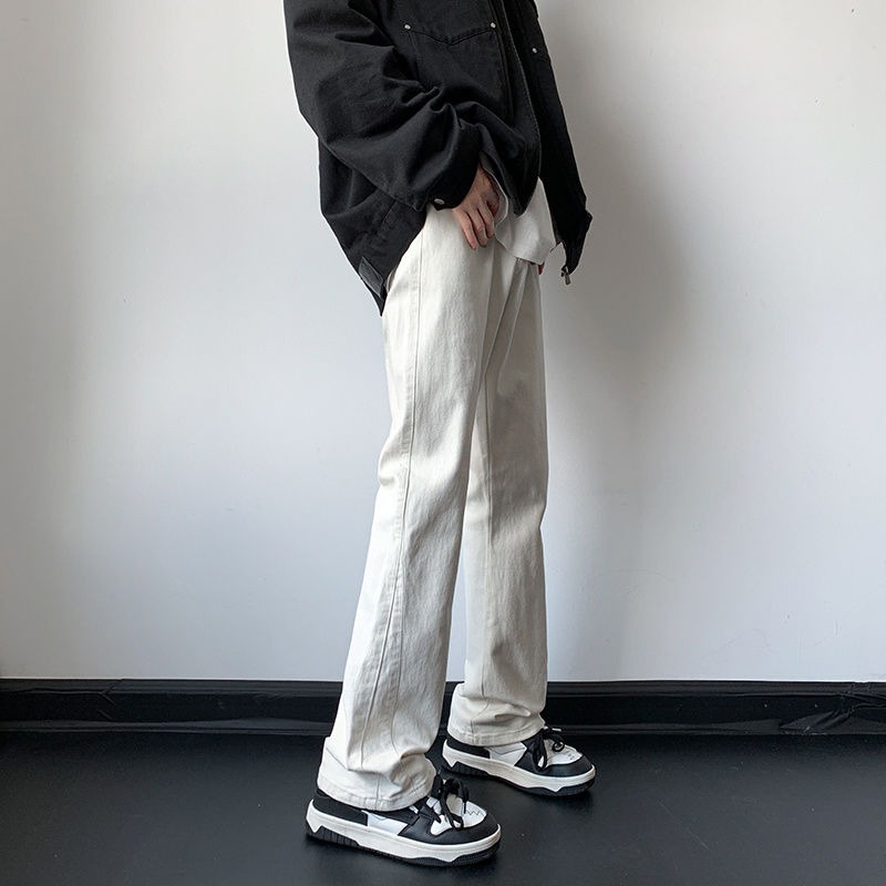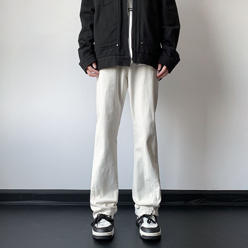 男士修身直筒休闲长裤复古春秋季时尚基础美式微喇vibe牛仔裤子