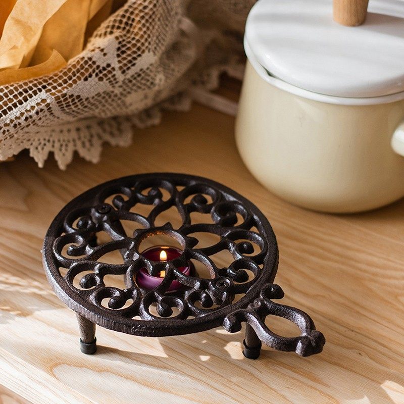 复古铸铁隔热垫杯垫保温架加热底座装饰摆件欧式摄影拍摄道具造景